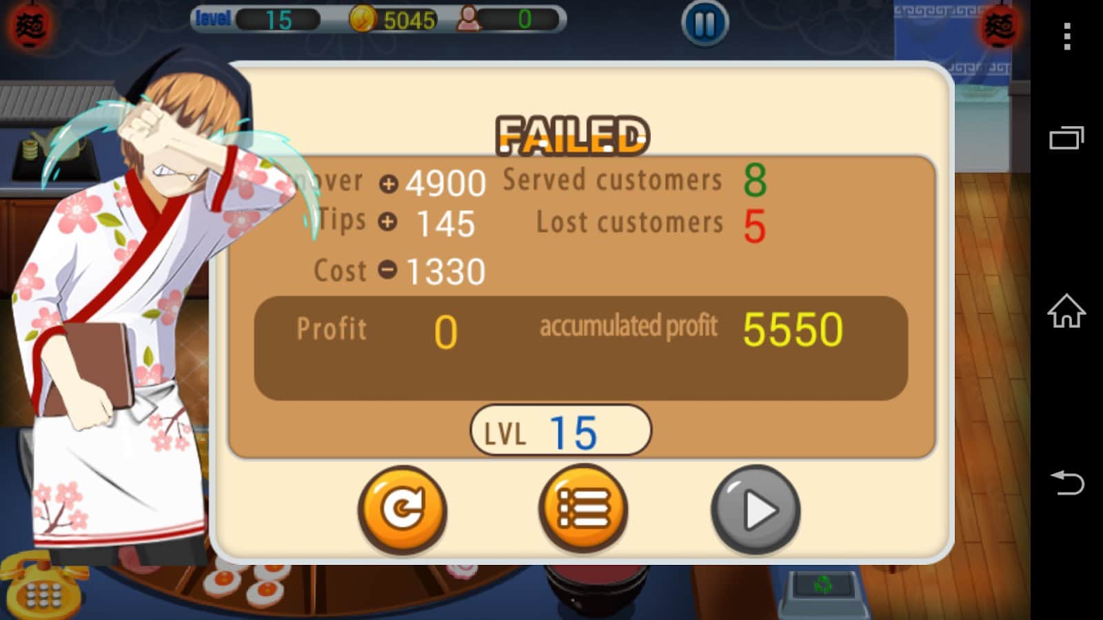 Ramen Sushi Bar – если вы хотите целиком и полностью погрузится в мир японского правильного питания, тогда эта игра откроет перед вам свои двери. Создайте свой успешный бизнес японской кухни и наслаждайтесь японским спокойствие вашего заведения, хотя когда ваши посетители «раскусят» кафе, тогда о спокойствии можно позабыть. Чем дальше вы дошли на своём поприще, тем большее количество посетителей вы должны обслужить. Не заставляйте клиентов сильно долго ждать, а то они останутся недовольны. В игре вы сможете получить опыт владением бизнеса и максимизации вашего дохода.