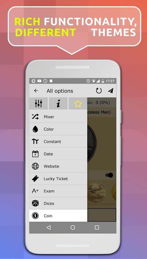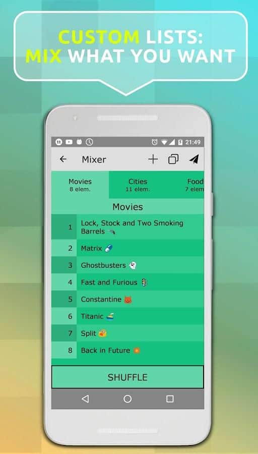 - Возможность перемешивать порядок слов, карты, игральные кубики, цвета, монетки;