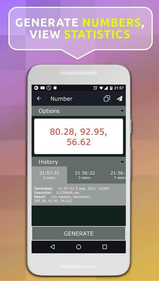 Приложение Random Gen пригодится как нельзя лучше тем, кто хочет придумать надежный пароль, любит азартные игры на удачу или просто увлекается генерацией чисел в массовом порядке.