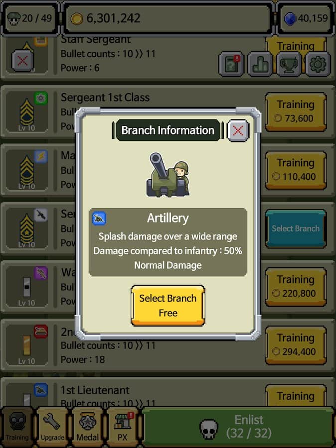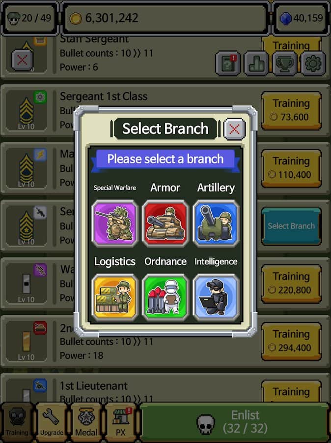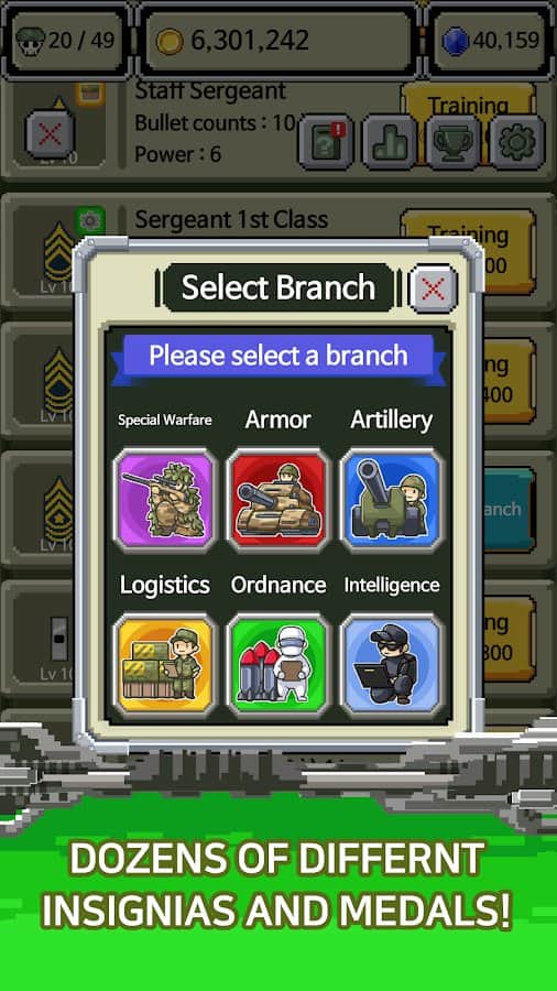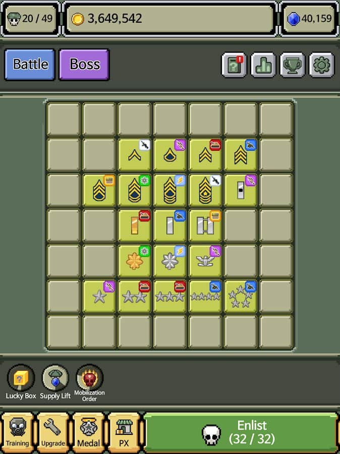 Rank Insignia - Super Explosion - внимание, намечается серьезная война! Тщательно подготовьтесь и разработайте хорошие стратегии. Разные ветви на выбор, сбор коллекции медалей со званиями, уничтожение многих врагов и боевой дух. Это простая игра для каждого, самое главное разобраться и научиться играть, а опыт приходит позже. Экспериментируйте над комбинациями, силами войска, сражайтесь с боссами, проходите интересные задачи и веселитесь. Насобирайте достаточное количество денег для улучшения базы и покупки мощной техники, чтобы иметь шансы выше на победы.