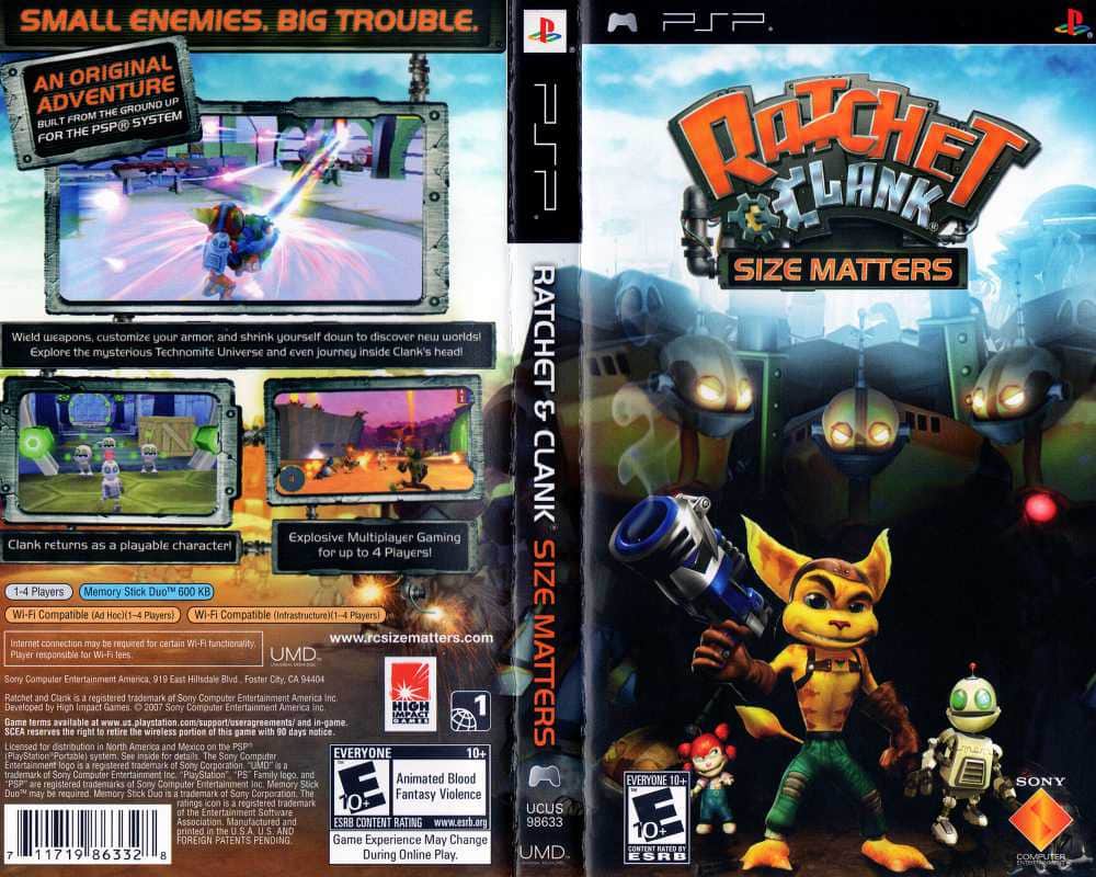 Ratchet & Clank: Size Matters - это захватывающая глава в легендарной серии, которая впервые пришла на PSP, не уступая своим консольным братьям ни в чем. Рэтчет и Кланк, неразлучный дуэт, отправляются в очередное захватывающее приключение в этом 3D-платформере, раскрывая тайны Техномитов - удивительной расы гениальных изобретателей, решивших создать армию клонов. В этой игре вас ждет обширный арсенал обновляемого оружия, включая знаковые Агенты Судьбы, Гипершот и Пушку-отсос, чтобы покорить ваших врагов.