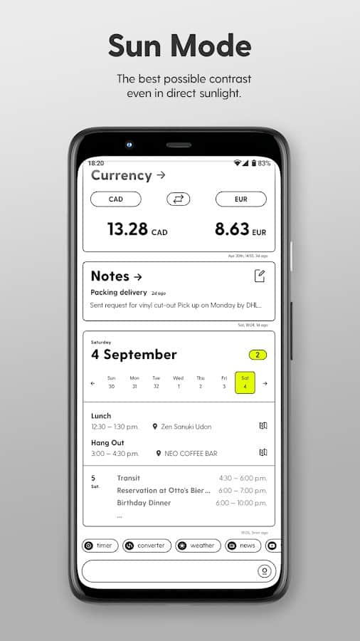 При помощи лаунчера Ratio вы легко сможете е запускать, контролировать работу и управлять программами на своем устройстве. Простые и функциональные настройки позволят оптимизировать систему смартфона, рабочий стол, обмен сообщениями, продуативное ежедневное использование. Сортируйте приложения по дням для быстрого доступа к ним, применяйте режим "ящиков", создавайте персональные карточки (Календарь, Конвертер валют, Погода, Заметки, Новости и проч.). Все мессенджеры собраны в отдельную папку, открытие каждого из них происходит в один клик. Объединяйте важные разговоры и сообщения в одном месте, добавляйте названия и темы, меняйте режимы управления одним касанием. Приложение полностью безопасное и все личные данные под надежной защитой.