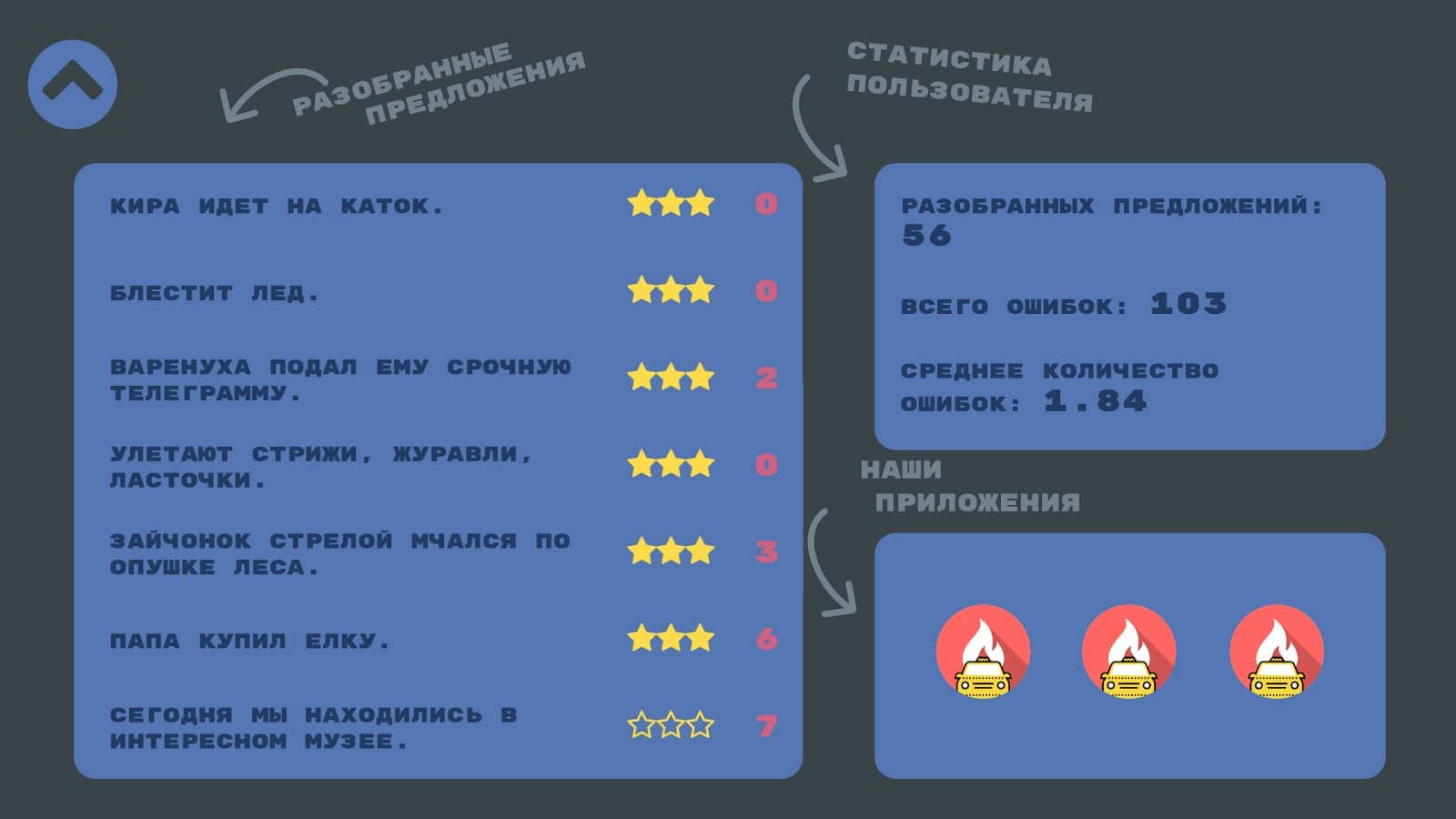 "Разбирайка" в игровой и непринужденной форме поможет и школьнику, и студенту без труда разобрать даже самое сложное по структуре предложение и понять его конструкцию. При помощи него вы сможете отследить динамику развития и больше не напрягаться над этой темой по русскому языку. Любой пользователь по достоинству оценит развивающие функции программы и сможет потренироваться над выполнением определенных заданий и упражнений, подсчитав количество сделанных ошибок и исправив их. Совершенствуйте свои навыки разбора, наслаждаясь красивым, красочным, но в то же время простым и понятным интерфейсом.