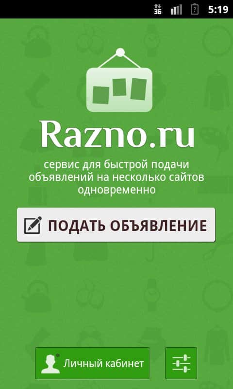 Объявления Razno.ru - это отличное приложение на андроид в котором вы сможете размещать частные, бесплатные объявления. Хотите подать объявление чтобы быстро продать кофемолку, ipad, квартиру, нетбук и прочее - воспользуйтесь бесплатным сервисом и мы разместим ваше объявление на самых популярных площадках а также и на нашем сервисе.