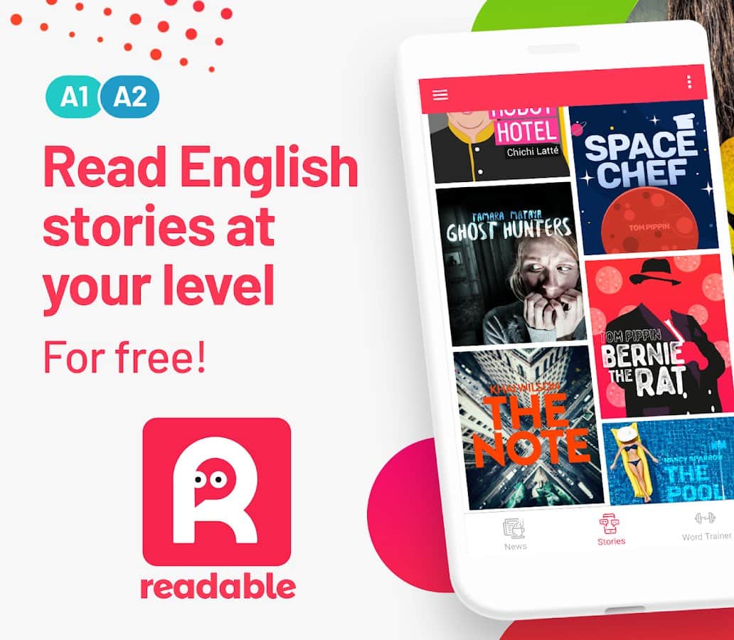 Приложение Readable дает возможность получить бесценный опыт и попрактиковаться при изучении разговорной речи и английской грамматики. Читайте бесплатно английские рассказы различных жанров, знакомьтесь с новостями, переводите их. Интеллектуальные функции помогут вам отобрать материал под ваш уровень знаний и владения языком. Сохраняйте незнакомые и только что изученные слова в словарь для дальнейшего закрепления материала. У каждой фразы есть аудио-перевод, который поможет быстро понять смысл прочитанного. Все истории в приложении имеют динамичный и структурно развитый сюжет, который интересно читать.