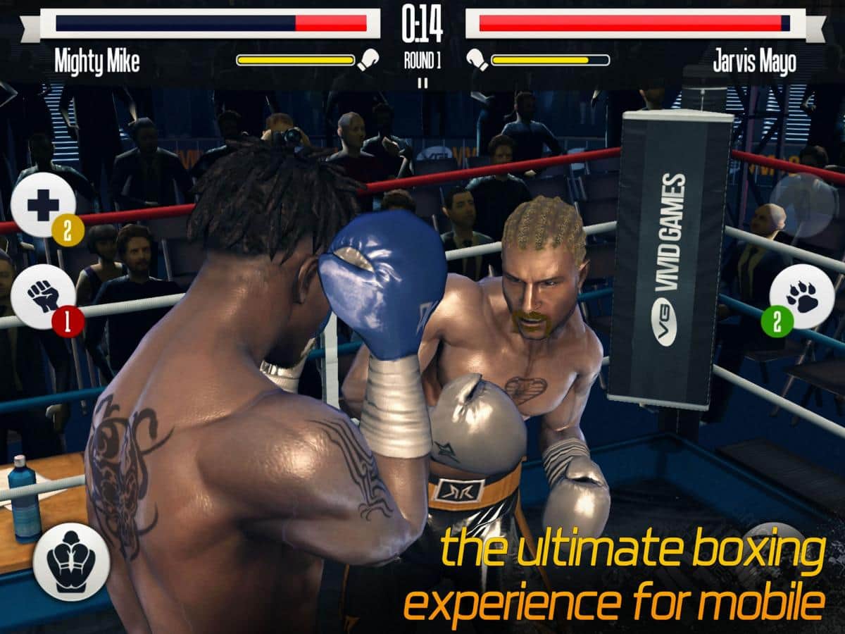 Real Boxing - реалии боксерского ринга в волнующем и захватывающем экшене. Обалденная графика и революционное управление делает эту игру просто неимоверной. Все настолько реалистично, что вы чувствуете как бежит пот и ощутите каждый удар, апперкот и хук. 4 арены, режим карьеры, более 30 поединков и 3 возможных пояса. Кроме того игра предусматривает он-лайн мультиплеер через Game Center в реальном времени.
