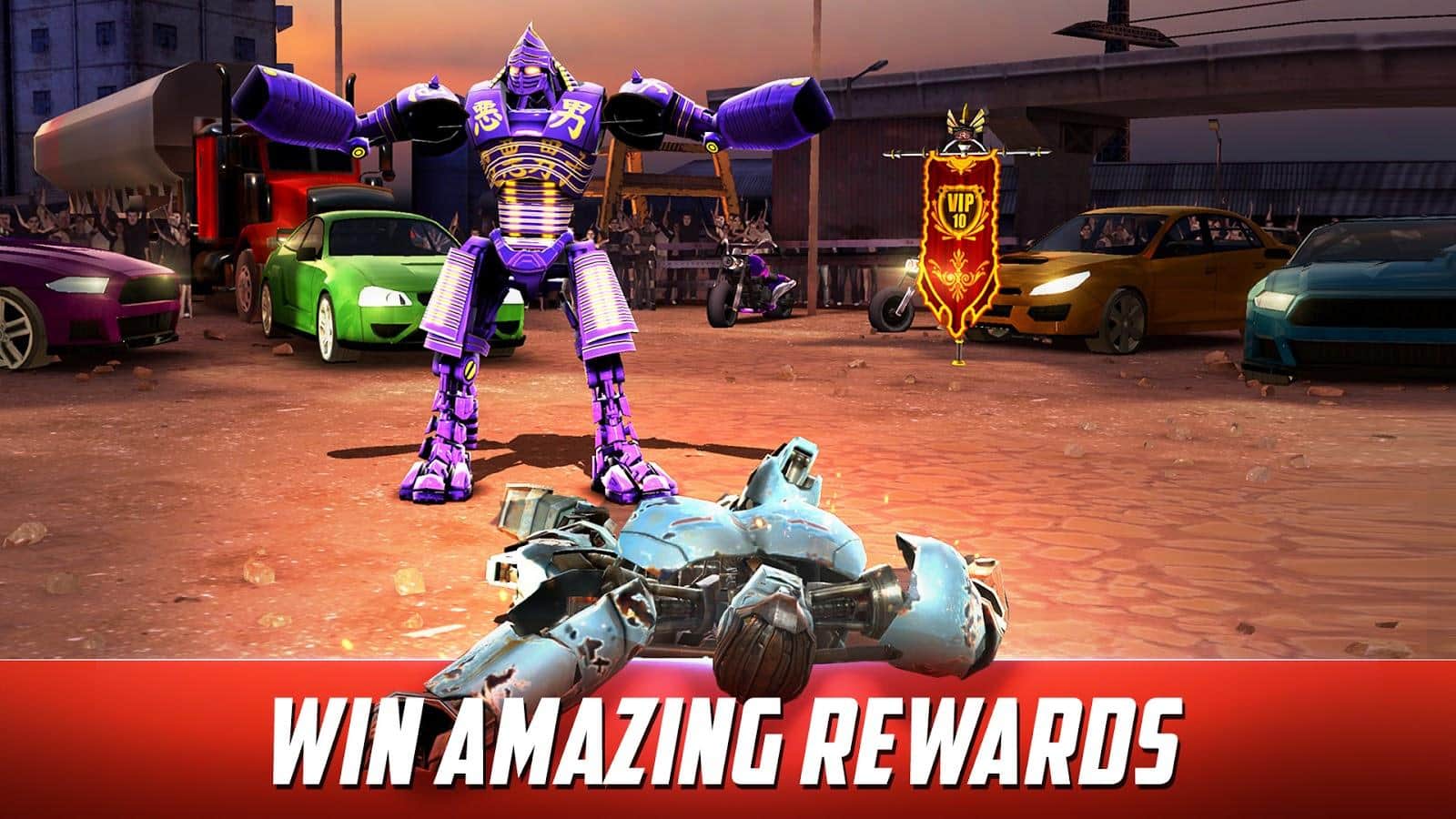 Real Steel World Robot Boxing - продолжение андроид игры на тему фильма Реальная сталь. На этот раз вы будете участвовать на мировом чемпионате. Игра получила улучшенную графику: теперь роботы выглядят намного реалистичней. На ваш выбор один из двадцати четырех роботов, в том числе и полюбившиеся герои из фильма. Улучшения роботов так же потерпели изменения – теперь можно не просто улучшать характеристики робота, но и ставить на него новые детали.