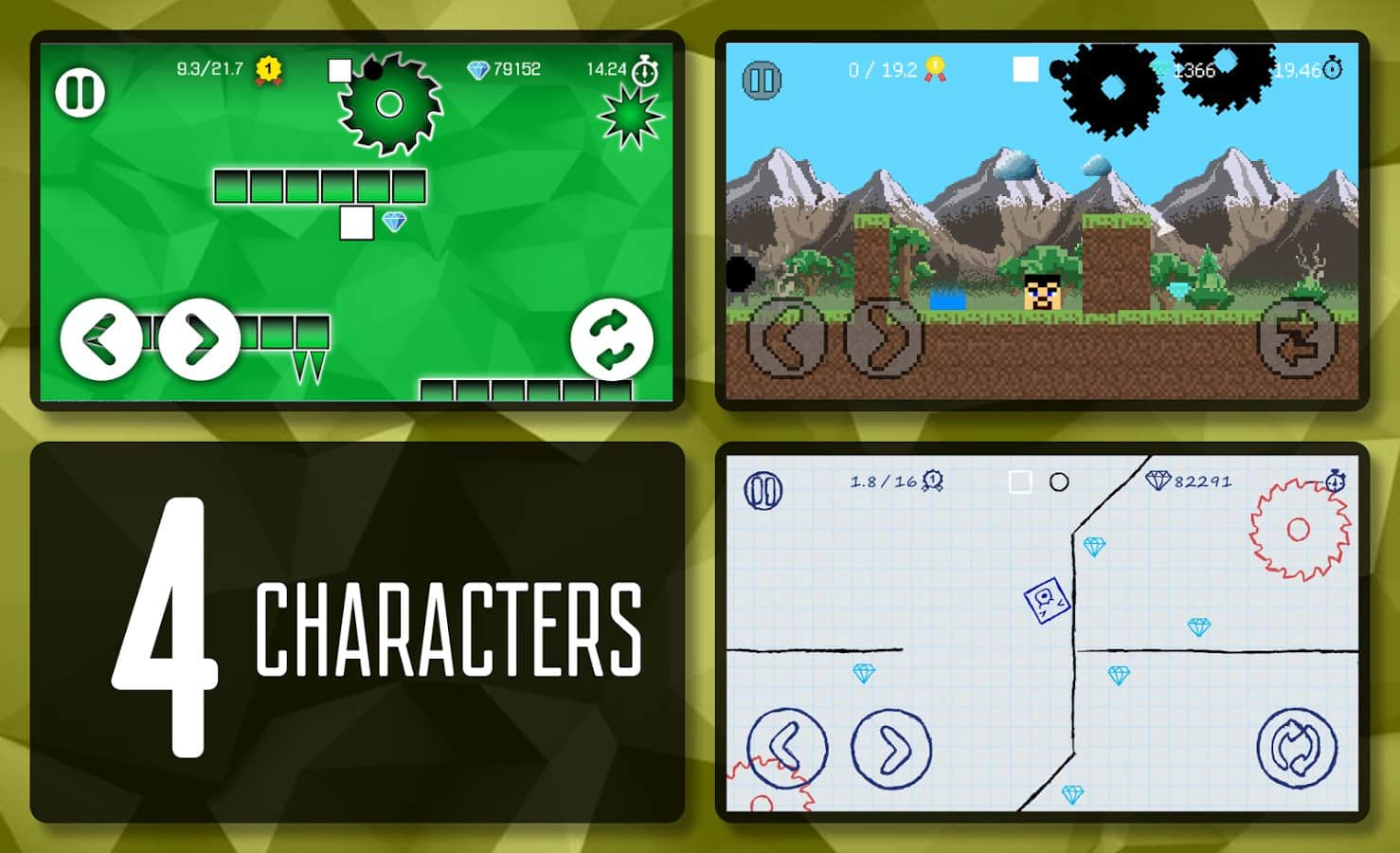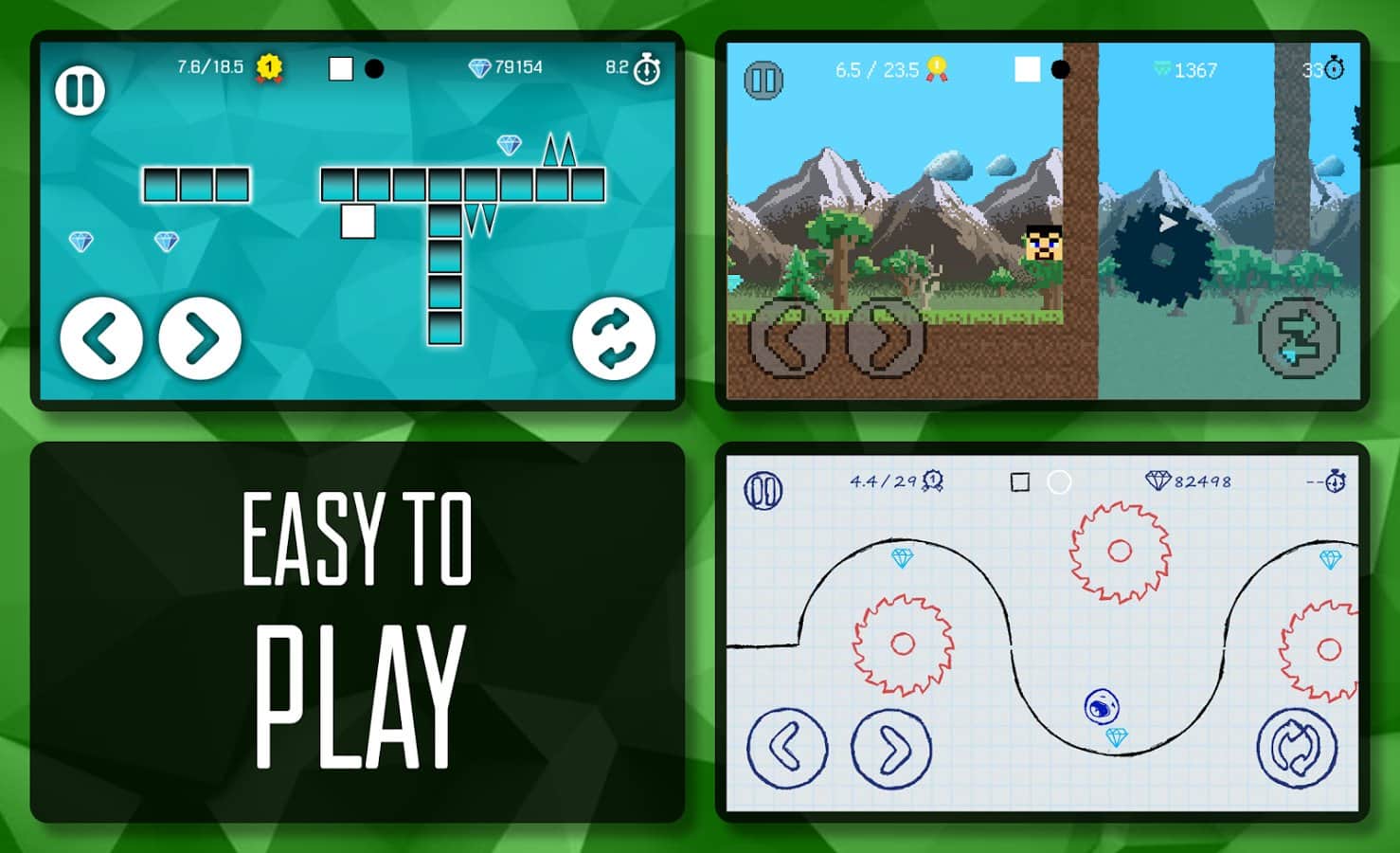 Rebons – хардкорный платформер на андроид, который порадует вас неповторимой физикой. В этой игре вашей задачей будет передвигаться по многочисленным уровням игры и вовремя нажимать на экран переключая между фигурками, которые имеют различные возможности. Приготовьтесь к тому что на вашем пути встанет большое количество преград и препятствий, которые вам необходимо будет преодолеть, применяя свойство шара катиться, квадратика подниматься по платформам и звездочки уничтожать преграды на пути. Впереди вас ждут 60 сложных уровней, которые вы сможете пройти, прилагая свою отличную реакцию и внимание.