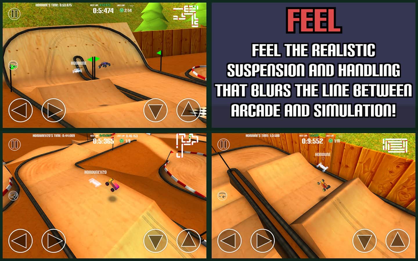 ReCharge RC - красивые гонки на андроид, где вы сможете кастомизировать свою машину так, как вам хочется, создать собственную трассу и установить на ней личный рекорд, пусть кто нибудь попробует обойти вас по времени!В игре вы сможете играть со своими друзьями, соревноваться с ними в скорости или в создании самой сложной трассы.