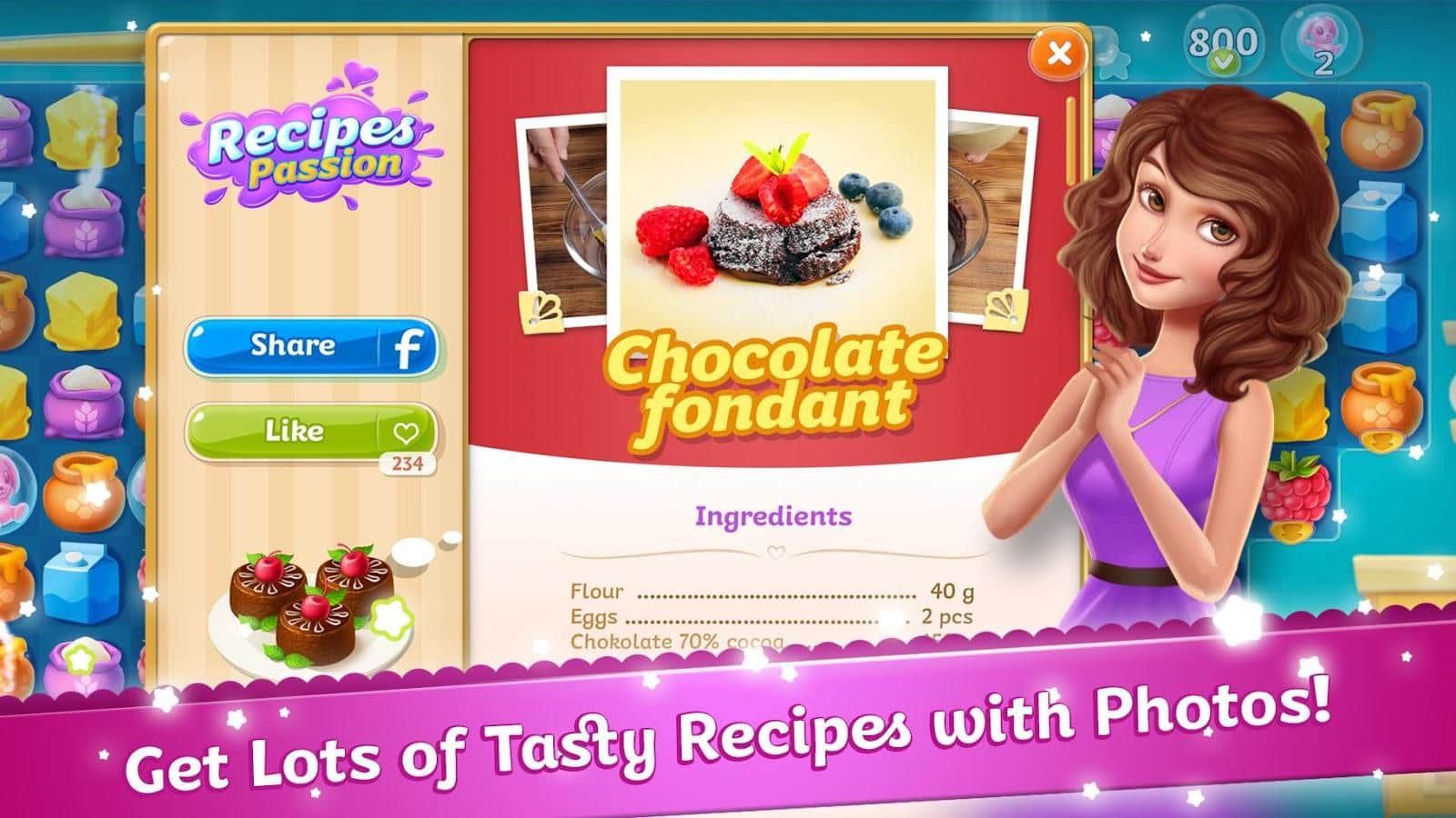 Recipes Passion: Sweet Treats – игра из жанра три в ряд на андроид, где вы получите в свое пользование небольшое кафе. В этой игре вашей главной задачей будет составлять одинаковые десерты в ряд, и открывать новые кулинарные рецепты. Превратите свое небольшое кафе в самое популярное место в городе и удивляйте местных критиков новыми кулинарными шедеврами. Составляйте ряды из сладостей и собирайте редкие ингредиенты для своих блюд. Выполняйте все поставленные перед вами задачи и миссии и получайте ценное вознаграждение, которое вы сможете потратить на покупку нового оборудования и мебели для своего кафе. В игре представлено несколько режимов игры, уникальные рецепты и множество увлекательных уровней.