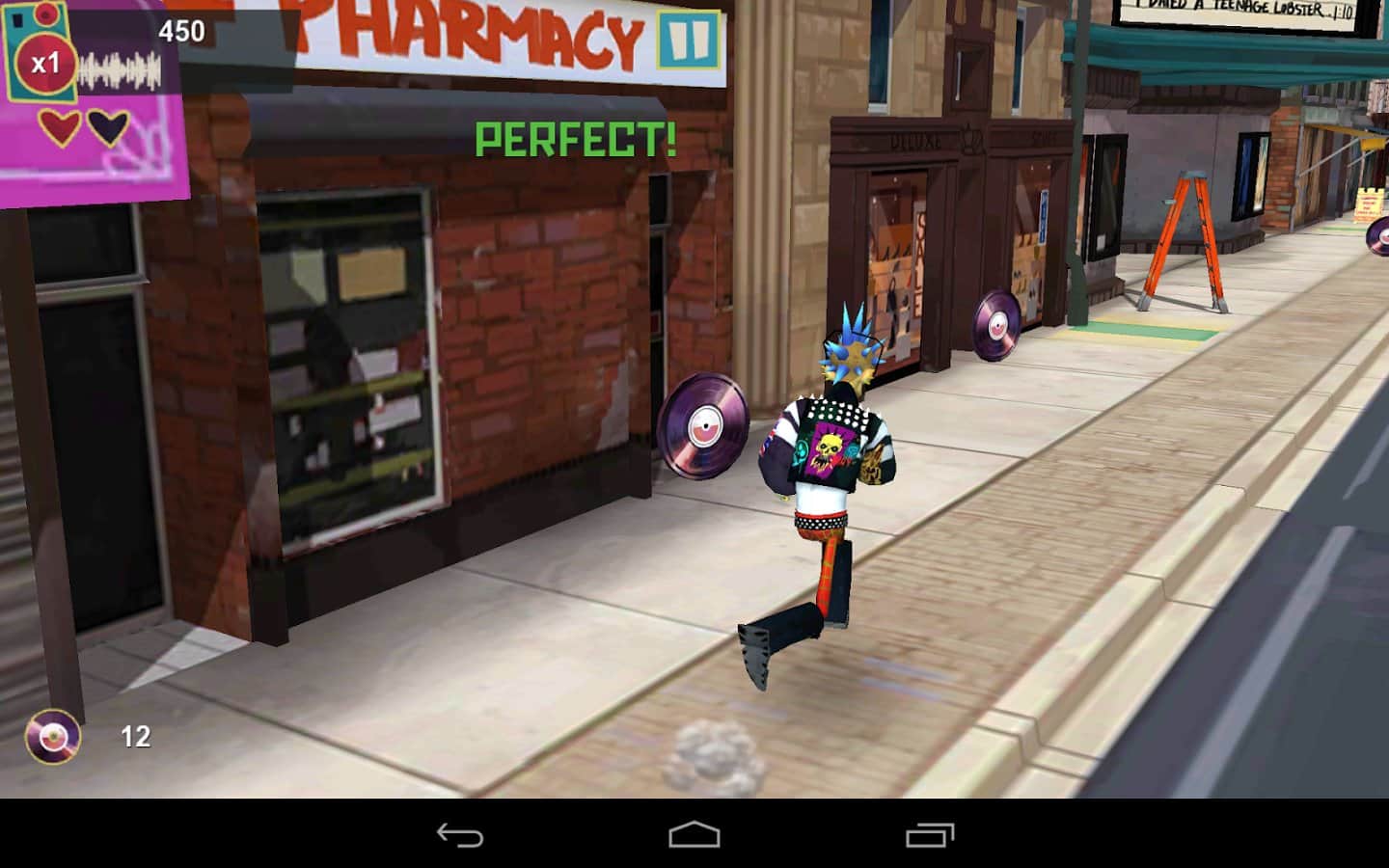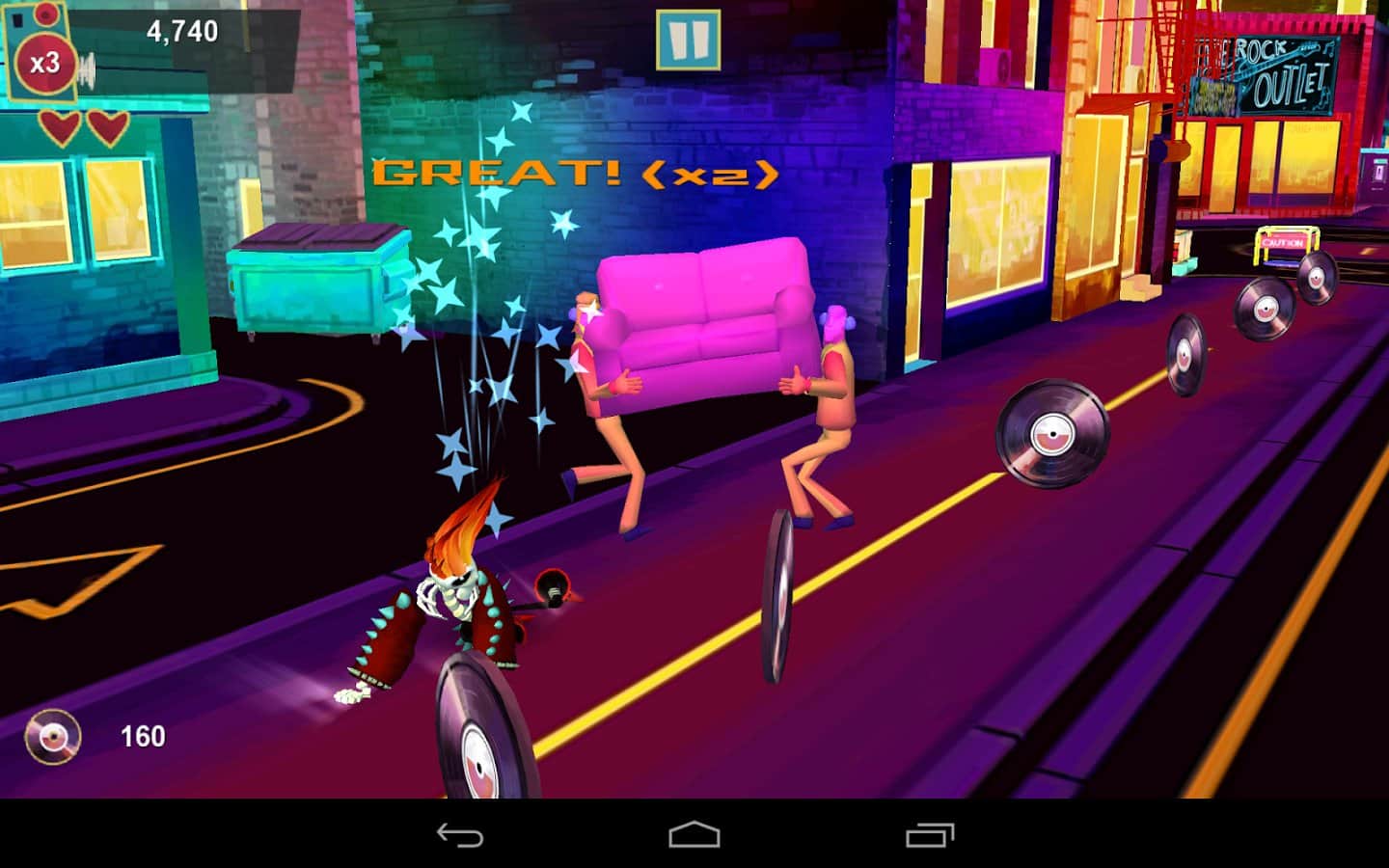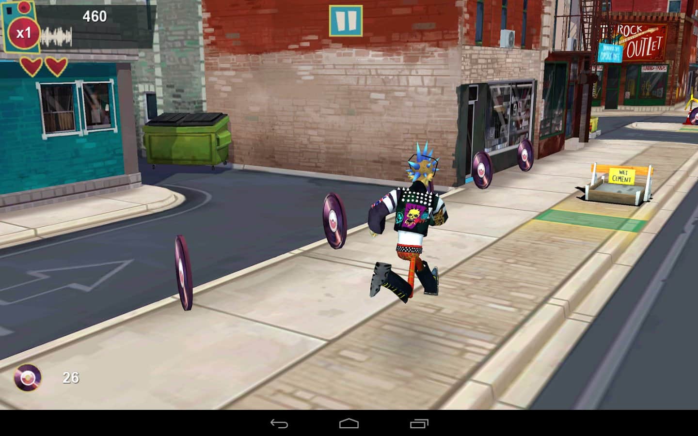 Record Run - музыкальный раннер на андроид, от создателей рок-группы. Выберите своего персонажа и бегайте по городу, собирайте пластинки и пытайтесь догнать воришку укравшего вашу коллекцию музыкальных пластинок. Одевайте ваших персонажей в различные костюмчики и выбирайте вашу любимую песню из музыкальной библиотеки игры, под которую будете бегать через различные уровни. Отличная графика с росписью ручной работы и большое количество разнообразных препятствий ждут вас.