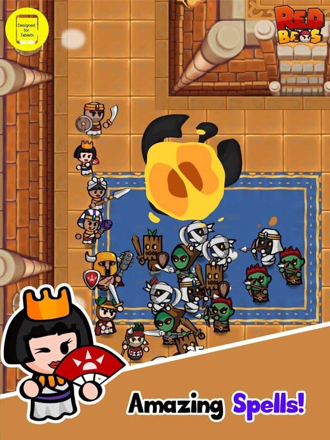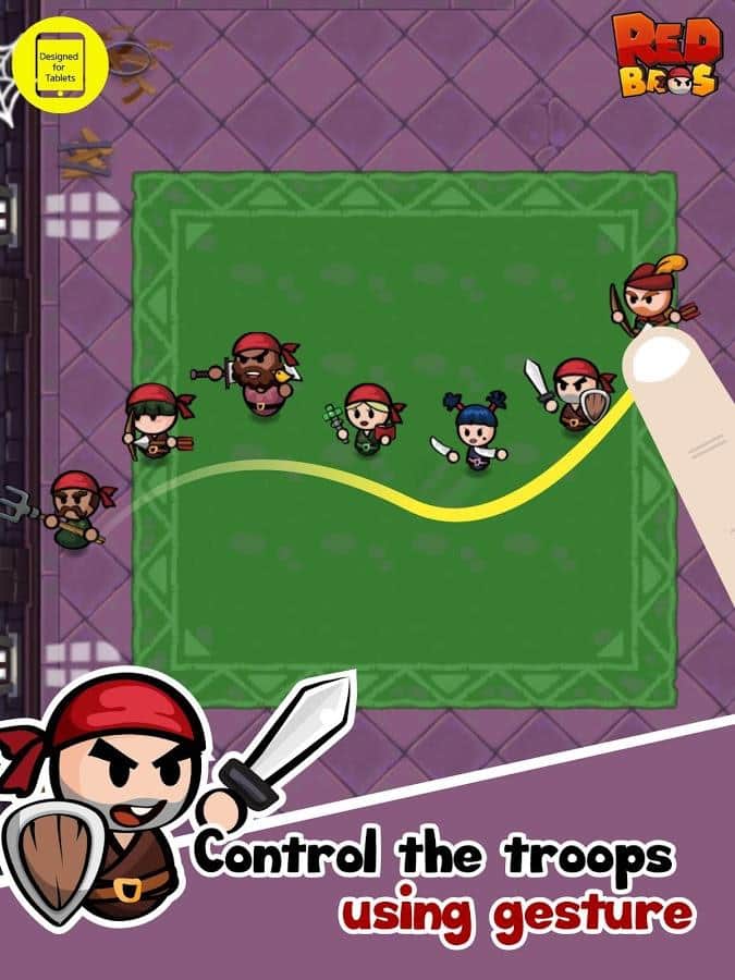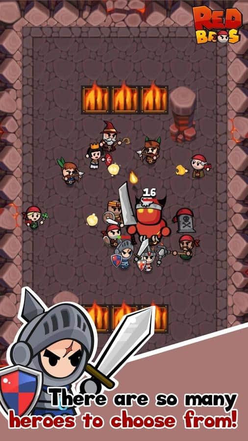 Redbros – проведите отряд героев по сложным уровням игры и очистите мрачный замок от врагов. В этой игре вы возьмете под свое управление небольшой отряд героев и вступите в схватку с королем скелетов и его приспешниками. Перемещайтесь по многочисленным комнатам замка и решайте сложные задачки, чтобы не угодить в ловушки и победить всех врагов. По пути вам встретиться множество героев, которые попали в беду, освободите их и они присоединятся к вам. С помощью одного прикосновения пальца к экрану управляйте передвижением всей команды и уступайте в схватку с сильными боссами. Применяйте в бою умения каждого героя и магию.