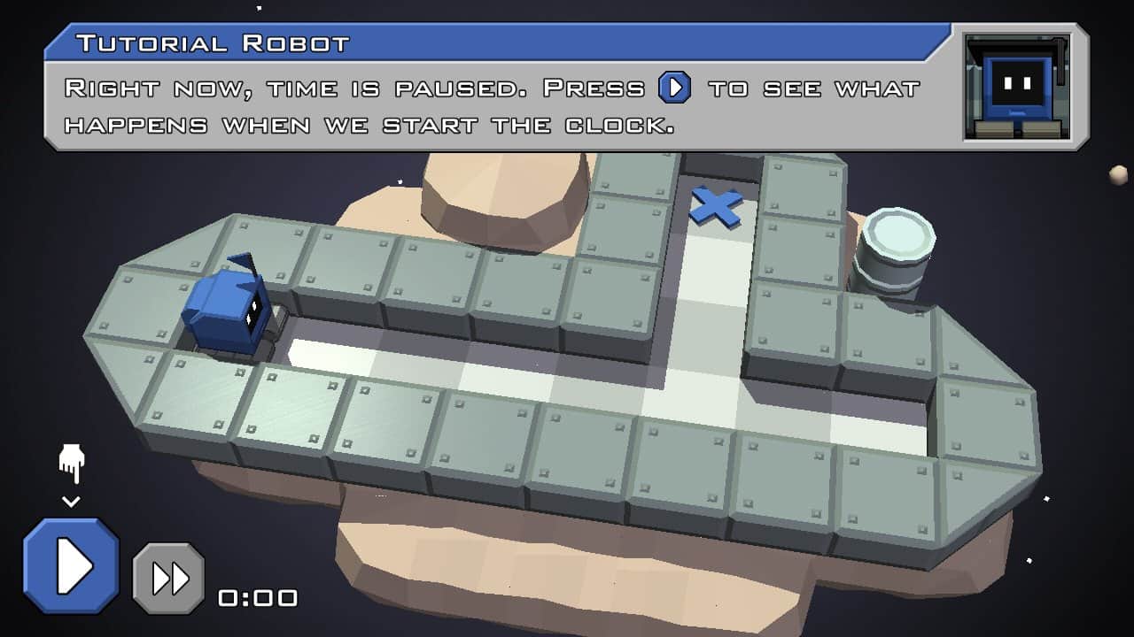 Головоломес в котором нам нужно помогать роботам вернуться на космический корабль. Ставишь предметы, настраиваешь через сколько они появятся, жмёшь старт, роботы едут, разворачиваются влево-вправо, доезжают до крестика, уровень закончен. Приятная графика, музыка, звуки. Русского языка нет. Мне нравится, вам тоже, я уже решил за вас.