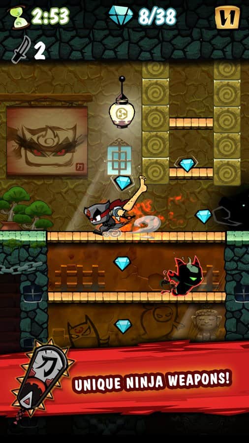 очень крутой платформер!классное оформление,приятное управление.Ниндзя очень весело кричит-Банзай!В общем круть