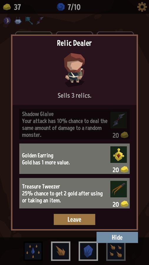 Relics of the Fallen сочетает интуитивную механику карточной игры с глубиной и непредсказуемостью roguelike-приключений. Выбирайте одного из двенадцати героев, каждый из которых обладает уникальными способностями и стилем игры, сражайтесь с монстрами, применяйте предметы и вступайте в рискованные взаимодействия с неигровыми персонажами. Исследуйте разнообразные подземелья, в каждом из которых — собственный набор правил и испытаний. По мере прохождения вы будете открывать новые карты, героев и механики, которые делают игру глубже и интереснее с каждой новой попыткой.