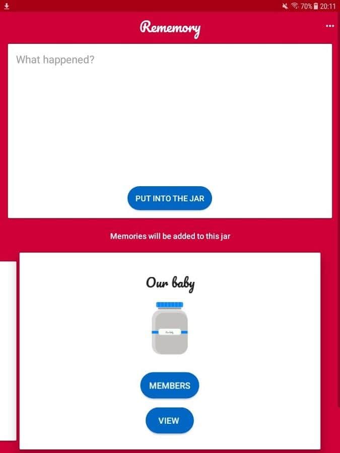 Жизнь быстротечна, нужно стараться запомнить самые значимые и важные ее моменты. Кто-то для этого ведёт специальный дневник, записывая туда все свои мысли и чувства, случаи из жизни, а кто-то предпочитает пользоваться приложением ля Rememory, которое позволяет хранить приятные воспоминания в специальной "баночке". Особенности: