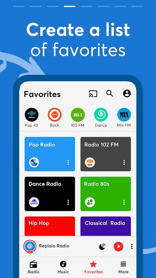 Replaio: Radio FM & Music Live - Больше 50 000 различных радиостанций со всего мира собраны в одном месте, и любой, кто хочет послушать музыку на иностранных языках, может открыть любую из радиостанций и наслаждаться звучанием песен в определенных стилях! В приложении у вас есть возможность поставить напоминания о начале выбранных передач, таймер сна, будильник с автоматическим повтором через конкретный промежуток времени и конечно же эквалайзер с самостоятельным управлением. Составьте целый список любимых песен и постоянно слушайте те радиостанции, которые вам нравятся больше всего.