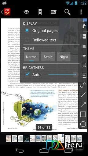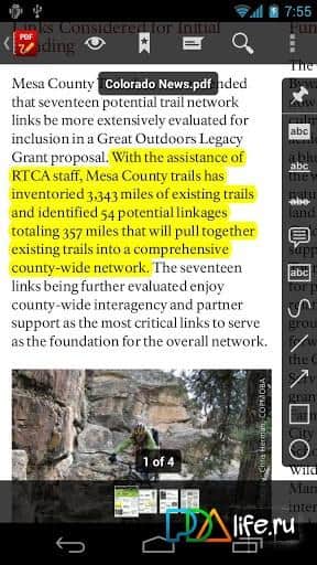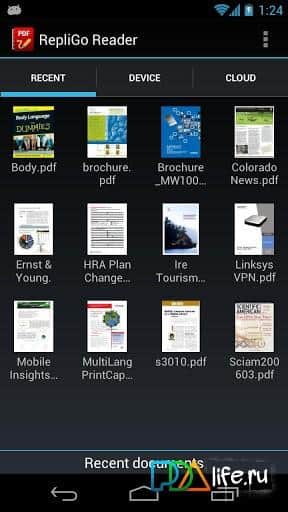 RepliGo Reader – удобная и быстрая PDF читалка для андроид устройств с возможностью поддержки нескольких уровней масштабирования, управления файлами, встроенных шрифтов, файлов, защищенных паролем и др. А так же есть отличная возможность использовать приложение RepliGo Reader в Gmail и браузере.