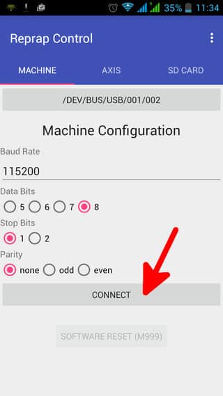 Reprap Control - Это приложение представляет собой простой интерфейс, который будет управлять вашим 3D-принтером Это приложение представляет собой отправитель G-кода с графическим пользовательским интерфейсом для ручного управления вашим 3D-принтером. Совместимостьс блютуз Модуль HC-05, HC-06. Настройки связи - 1200 ~ 250000 Биты данных: 5, 6, 7 или 8 Стоповые биты 1 или 2 Бит четности: нет, четный или нечетный