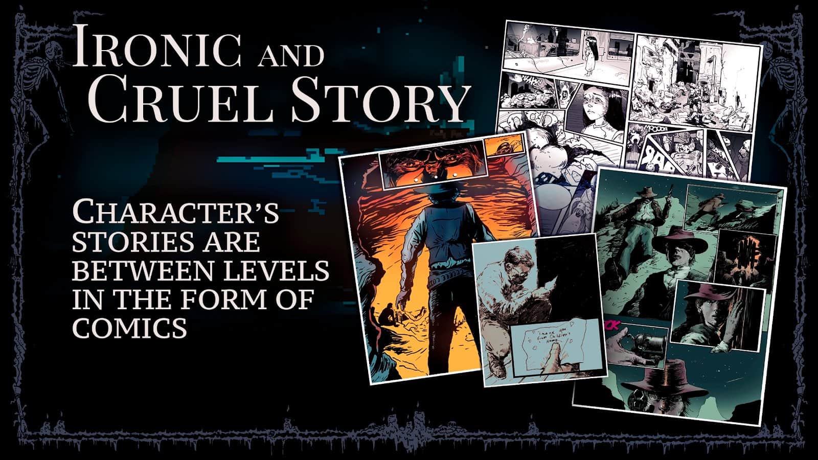 "Комиксы" с историей персонажа разблокируются после прохождения "вступительного уровня" [комиксы вполне прикольные, да, тут-уж автор не халтурил. хотя изобилуют наготой и трэшем, ну ок видать такая фишка.]