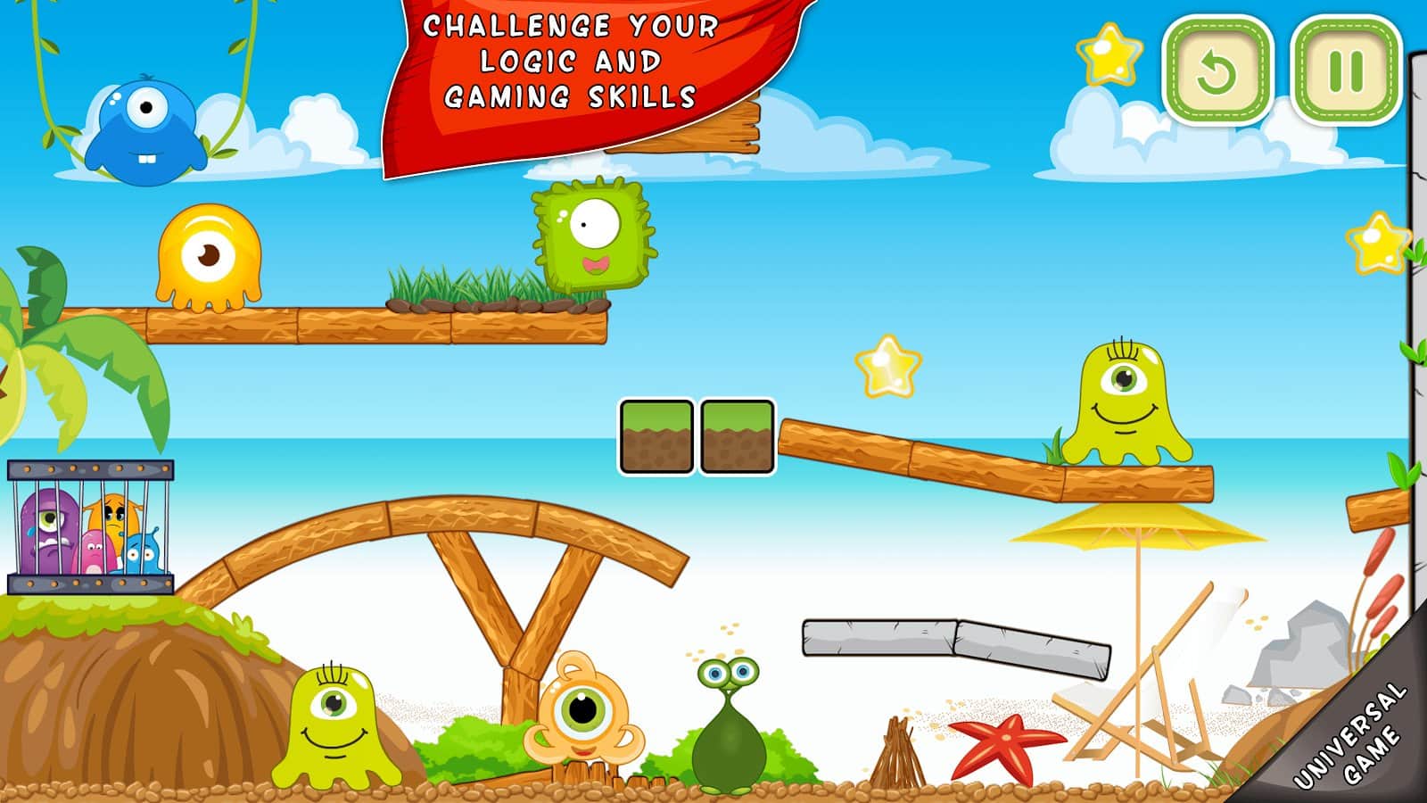 Rescue Aliens - игра на android, в которой вы будете помогать инопланетянам попасть обратно в космос. 6 инопланетян имеют уникальные способности, которые помогут им попасть обратно на свою родную планету. Пройдите все испытания и помогите этим милым пришельцам.