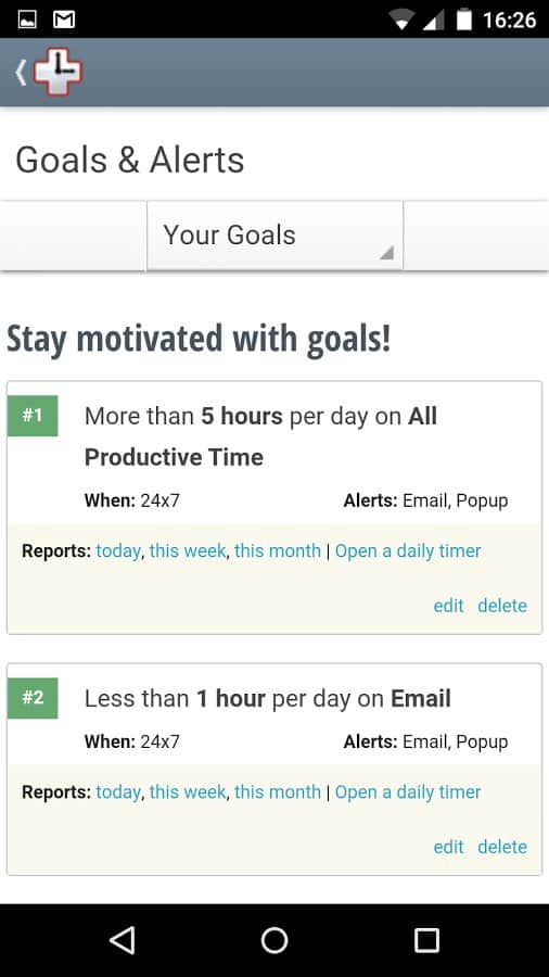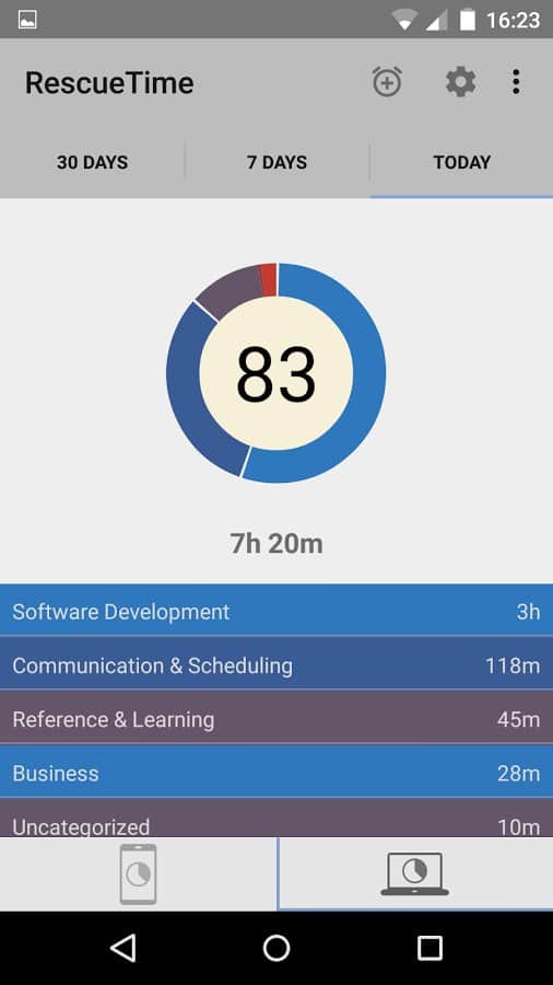 RescueTime Time Management - Хотите знать сколько времени вы тратите глядя в экран своего смартфона или же разговаривая с кем-то. Это приложение будет записывать любую вашу активность или же только ту что выберите вы, и сохранит всё это в отдельном меню. Вы сможете в любой момент узнать сколько времени вы потратили на то или иное приложение, или же как долго говорили по телефону, или же сколько уже работает ваше интернет соединение а так же многое другое.