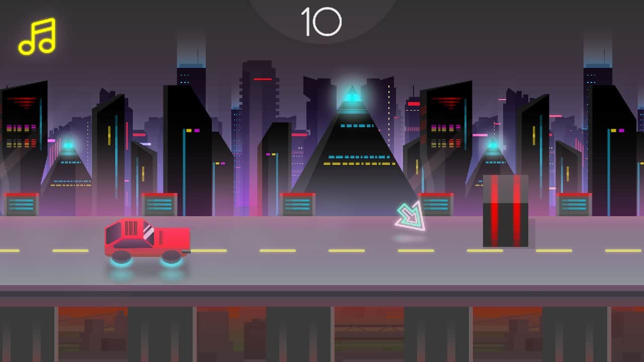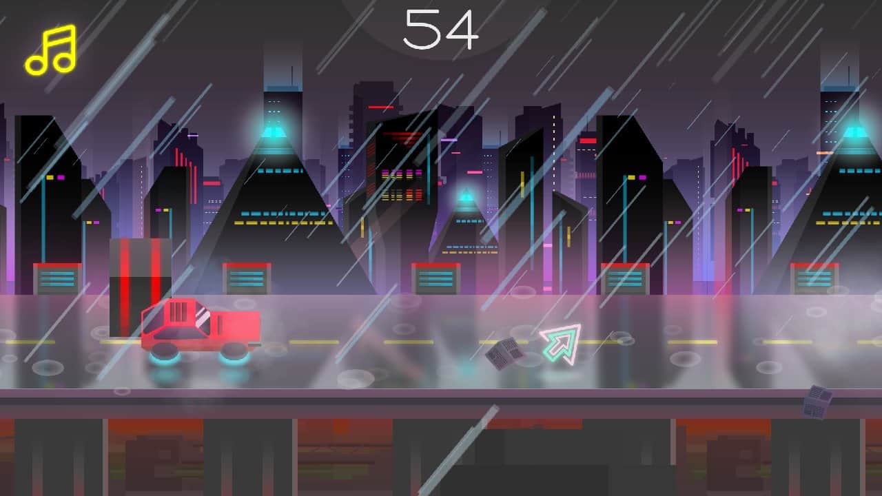 RetroWay – динамичная игра на андроид, где вы будете управлять автомобилем который мчится на огромной скорости по футуристическому городу. В этой игре вашей главной задачей будет ехать вперед и преодолевать все преграды на своем пути. Ездите по ночному городу и в нужный момент касайтесь экрана своего телефона или планшета чтобы совершать прыжки и избегать столкновений с объектами. Постарайтесь пройти максимальную дистанцию, установить свой рекорд в игре и получить многочисленные награды. Разблокируйте новые машины и уровни игры и поднимайтесь все выше в таблице лидеров.