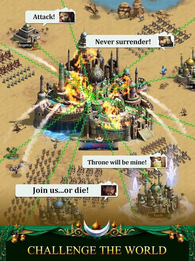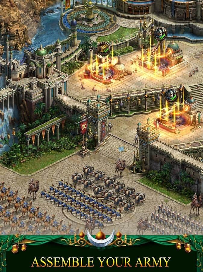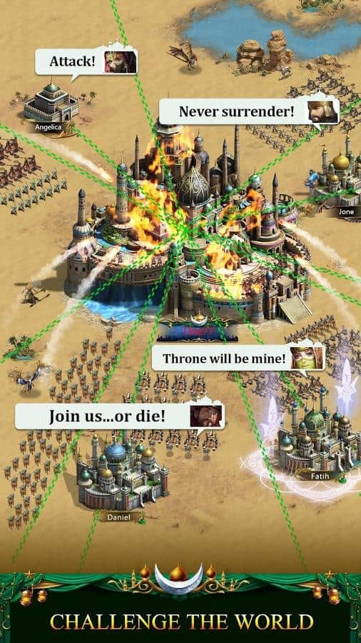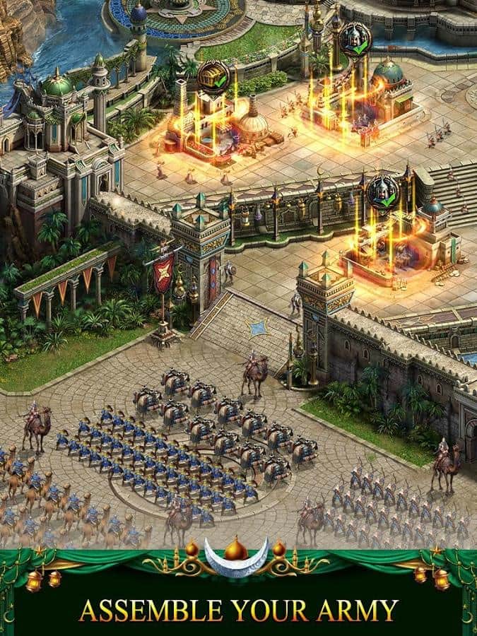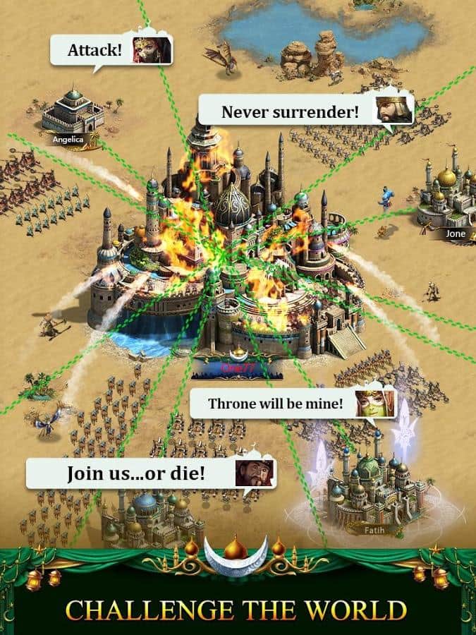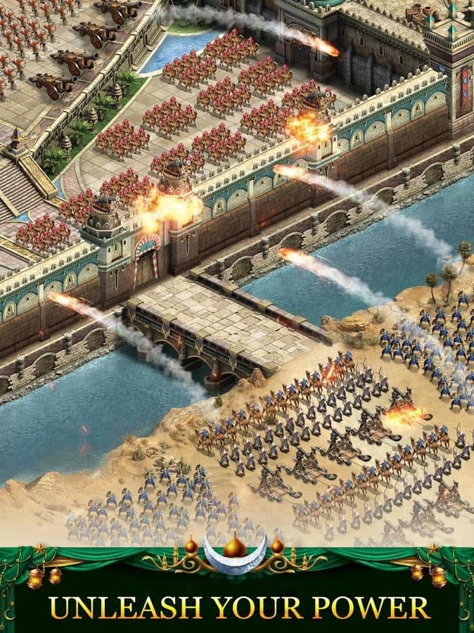 Revenge of Sultans – стратегия на андроид, которая перенесет вас в арабские страны и жаркие пустыни. В этой игре вам предстоит построить собственное королевство посреди пустыни и защитить его от нападок врагов. Станьте султаном и отличным полководцем и приведите свою многочисленную армию к победе. Исследуйте новые территории и открывайте для себя ценные месторождения по добыче ресурсов. Защищайте свои города высокими стенами, башнями и другими стратегическими объектами. Соберите огромную армию, которая будет состоять из пехоты, лучников, всадников и других солдат и направьте их силы на врага. Объединяйтесь со своими друзьями и создавайте непобедимые альянсы.