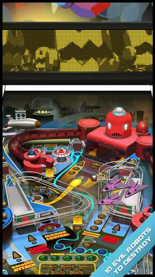 Revenge of the Rob-O-Bot - один из лучших вариантов классического пинтболла для вашего андроида. Звук, физика, геймплей - все на высоте! 5 сложнейших миссий, ретро-анимации, мультиболл - 5 шаров и злостные Роб-О-Боты, а также комбо, бонусы и мультяшки! Помогите спасти столицу будущего от нашествия и порабощения злодеем Роб-О-Ботом, который хочет превратить ее в мусорохранилище!