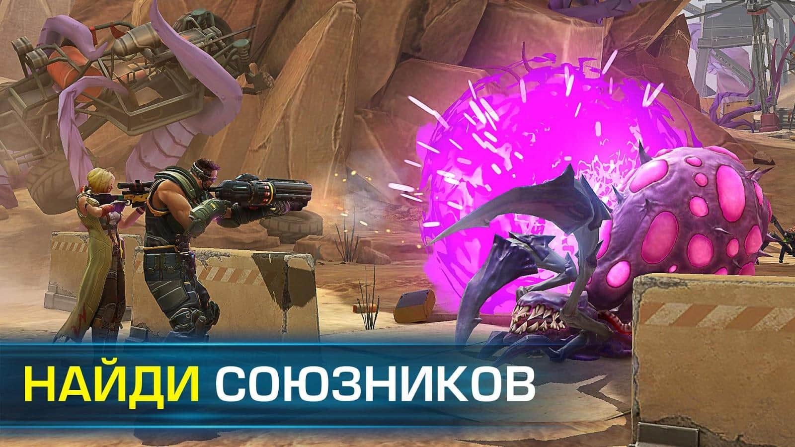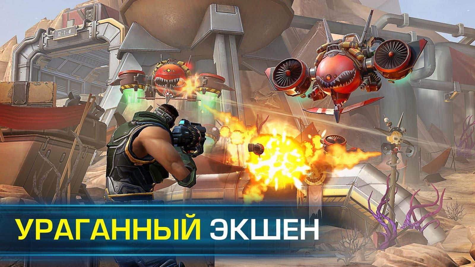 Revolution – шутер от третьего лица на андроид, с неповторимой атмосферой и отличной графикой. В этой игре вы перенесетесь на загадочную планету, где вашей задачей будет с помощью различного оружия уничтожать хищных тварей, роботов, мутантов и вступать в бой с мародерами. Вашей главной задачей будет выжить в этом опасном мире, где каждый хочет вас уничтожить. Создавайте и прокачивайте свое оружие, делая его совершенным и разрушительным. Разрабатывайте свою тактику ведения боя, ища слабые стороны противника и при этом уклоняясь от ответного огня врага. Объединяйте свои силы с друзьями и вместе с ними уничтожайте кровожадных монстров и сильных боссов.