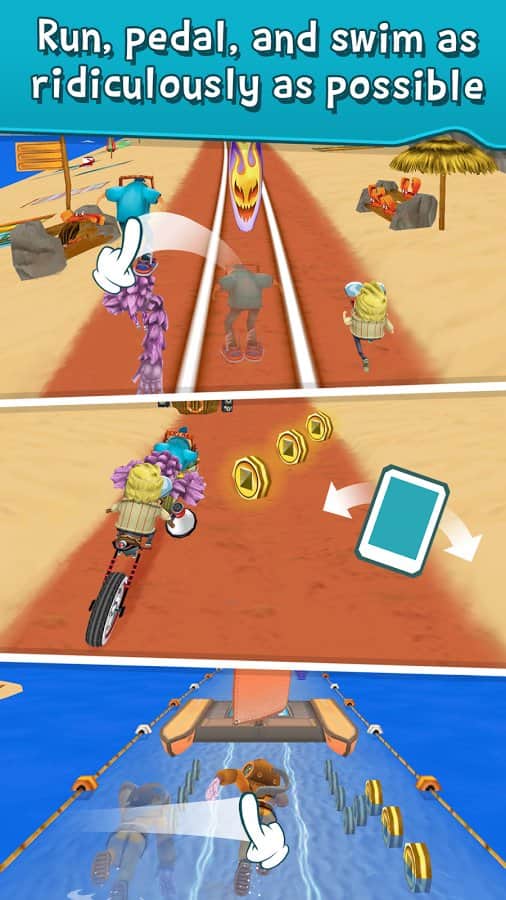 Ridiculous Triathlon – Runner – беги, плыви, катайся и всё это самыми нелепыми способами. Яркая, красочная аркада, в которой вам необходимо участвовать в импровизированном триатлоне. Три героя, три среды, каждый по отдельности не сможет достичь финиша, а втроём это под силу. Различные трассы не дадут вам заскучать, красивые пейзажи не должны вас отвлекать от основой цели. Остерегайтесь препятствий, которые могут сильно подпортить вам соревнования.