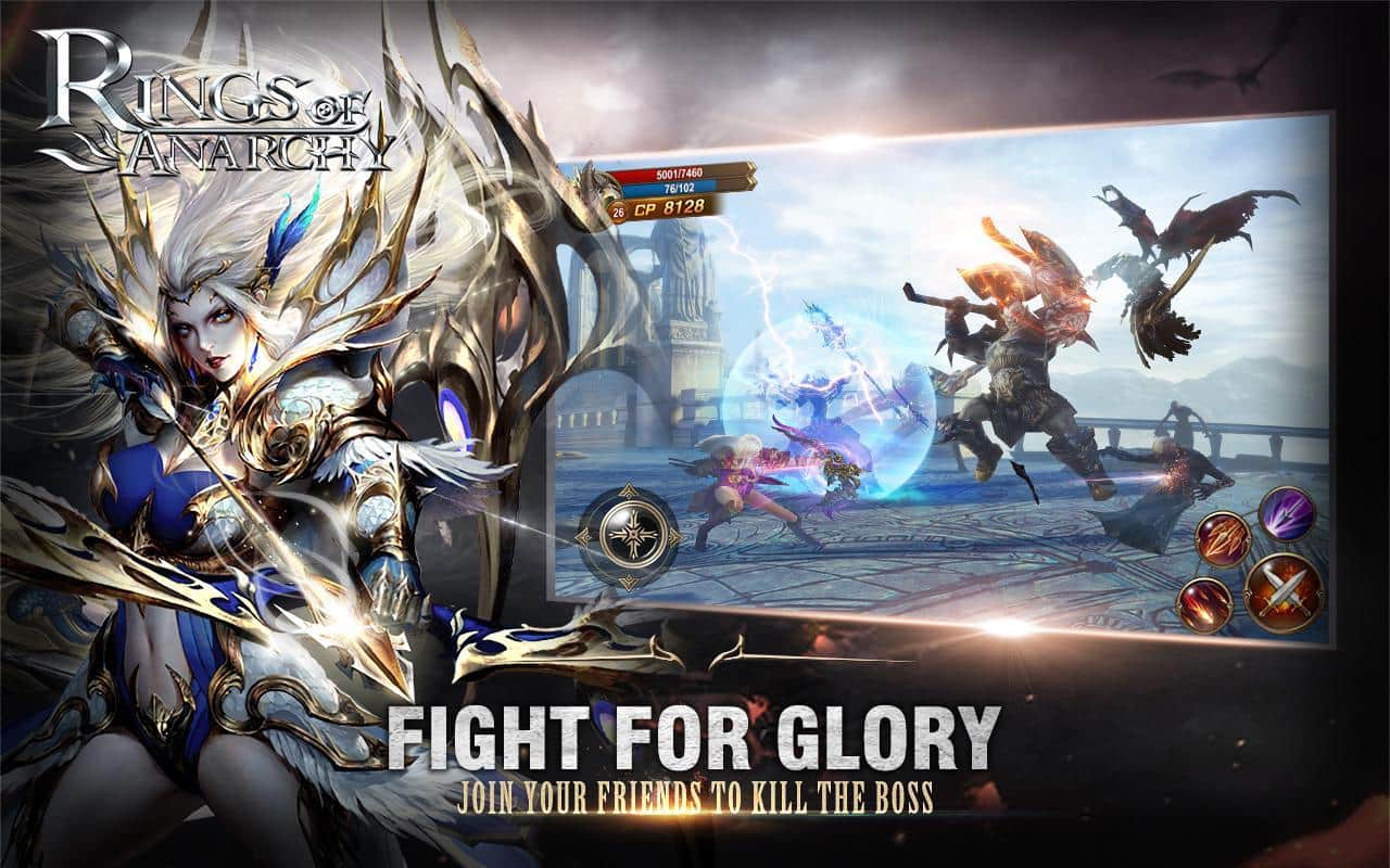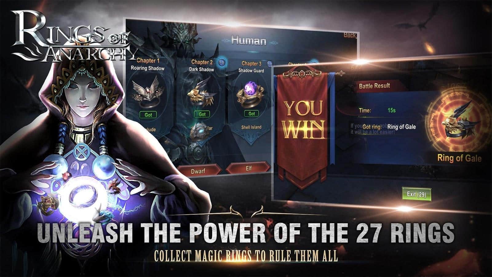 Rings of Anarchy – RPG на андроид, где вы будете сражаться с огромными монстрами и многочисленными противниками. Ваш герой в этой игре должен спасти мир от темных сил и для этого ему необходимо собрать 27 колец. Каждое кольцо находиться в уникальной локации, где вашего героя будут подстерегать сильные боссы, победив которого вы сможете заполучить кольцо. Сражайтесь с врагами и получайте бесценный опыт и возможность развивать героя. Приобретайте для героя предметы экипировки и наделяйте его мощным снаряжением. Главными особенностями игры является отличная графика, разные классы персонажей и возможность играть с друзьями.