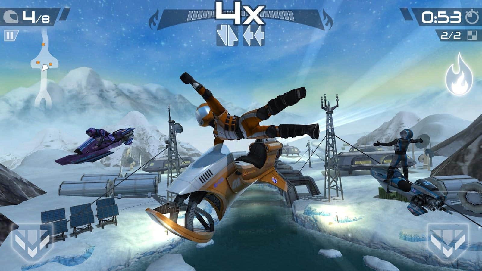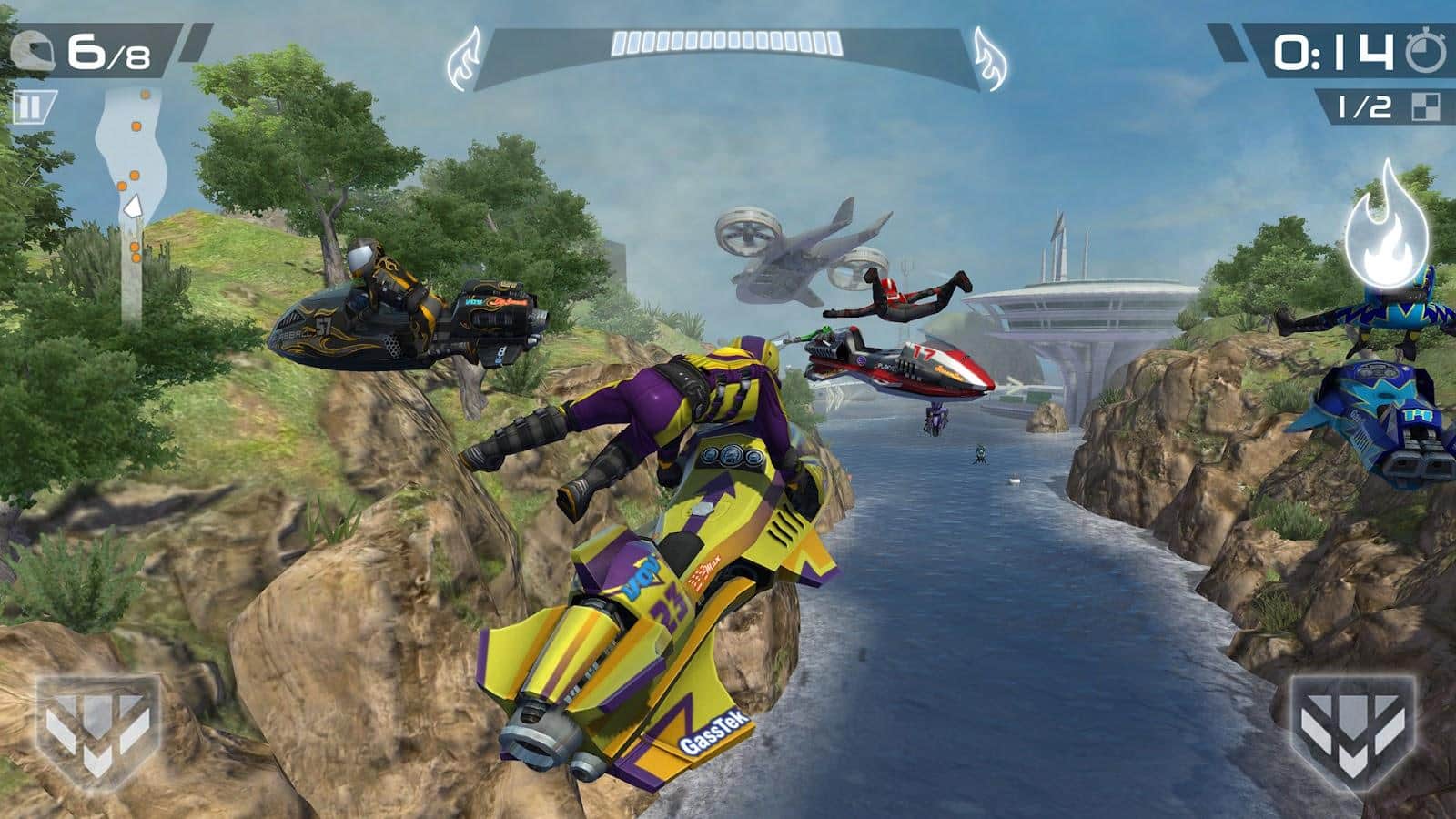 Riptide GP2 – интенсивные многопользовательские андроид гонки онлайн! Вам предстоит управлять гидро скутером, заряженным реактивным двигателем по водным трассам будущего. В игре реализована модификация ваших транспортных средств, а так же переработан движок трюков.
