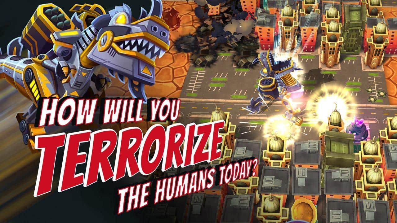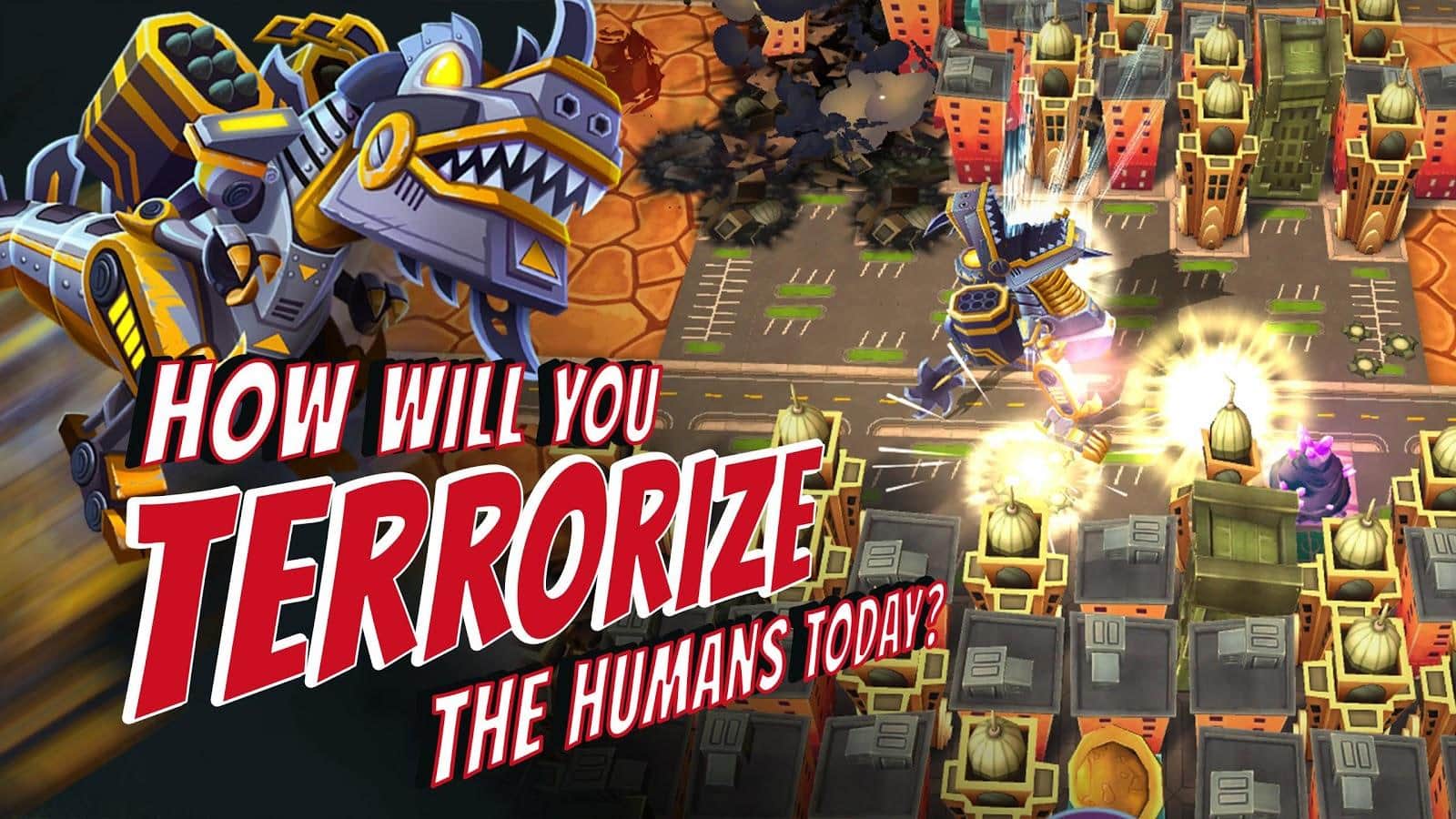 Rise & Destroy – захватывающее приключение на андроид, по уничтожению больших городов в качестве огромного динозавра. Наши динозавры мирно спали в своей пещере, но пришли люди и украли их детенышей, теперь вашей задачей будет разрушить огромные мегаполисы построенные людьми и вернуть украденное. Выберите себе подходящего динозавра, вырастите его до огромных размеров и направьте всю его мощь на разрушение городов. Для этого используйте огонь, электричество и лед, чтобы нанести максимальный ущерб городу. Пройдите все 90 уровней и получите лучшие награды и бонусы для максимальной защиты своего динозавра от людей.
