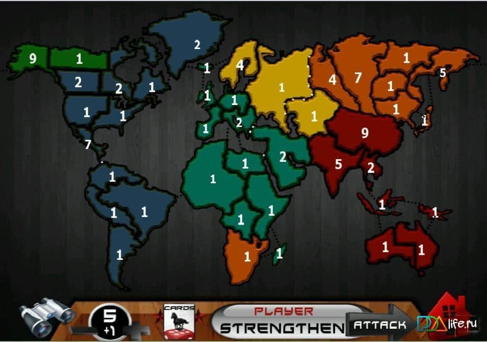 Risked – военно-тактическая настольная игра на андроид, в которую можно играть часами и она не надоест. В игре разнообразные карты включая Европу, Северную Америку и карту мира. Играя вы будете получать новые звания и различные достижения. Станьте лучшим игроком на мировой арене.