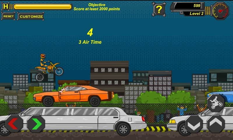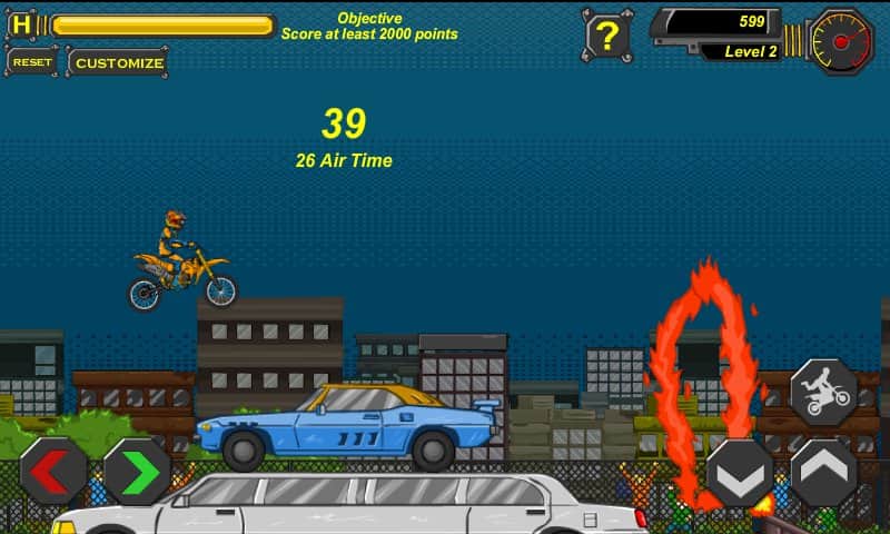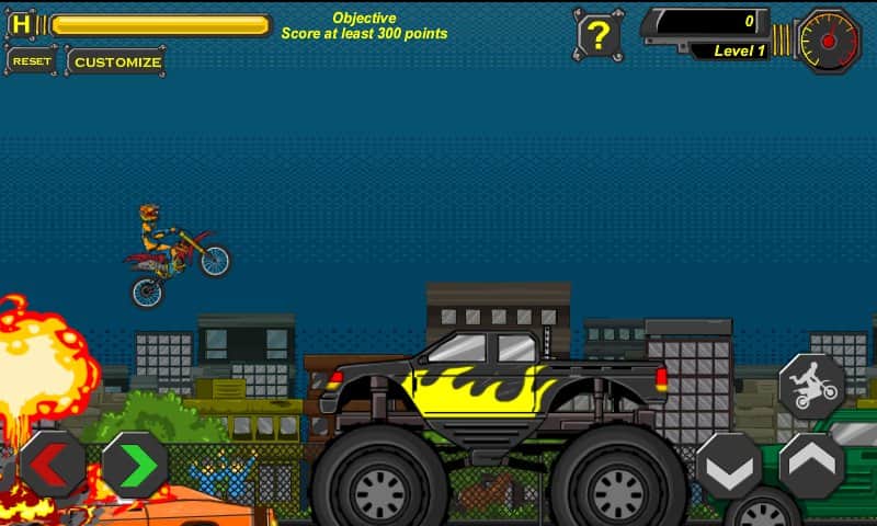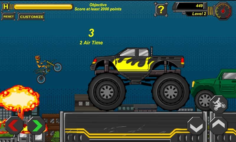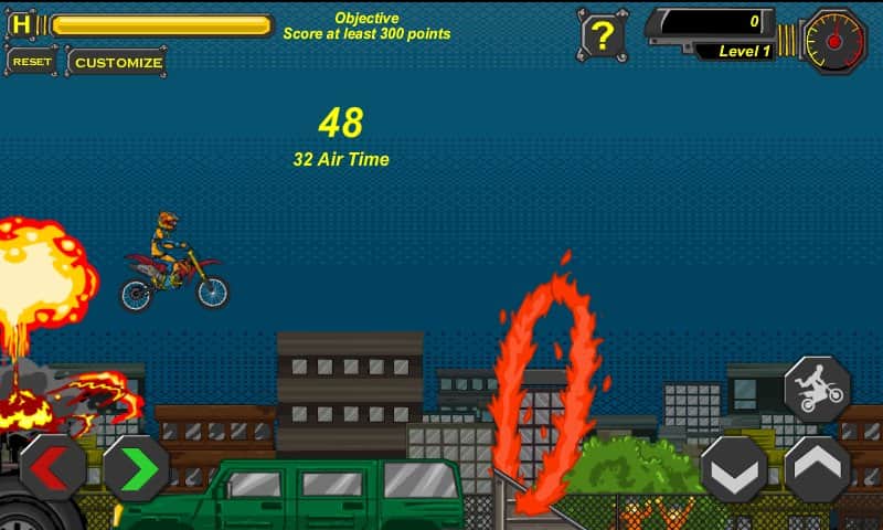 Risky Rider – мотокросс на андроид, где вы возьмете под свой контроль мощный мотоцикл и проведете его по всем уровням игры. Садитесь за руль мотоцикла и ведите его вперед, преодолевая все преграды и препятствия на пути. Гоняйте по сложным уровням игры и выполняйте все поставленные перед вами миссии и задачи. Старайтесь не опрокинуть свой мотоцикл, пролетая через горящие кольца и подпрыгивая на трамплинах. Уровни этой игры очень сложные и вам придется приложить немало усилий, чтобы пройти их все и установить свой рекорд в этой игре. Играйте в эту игру со своими друзьями и поднимитесь на самый верх таблицы лидеров.