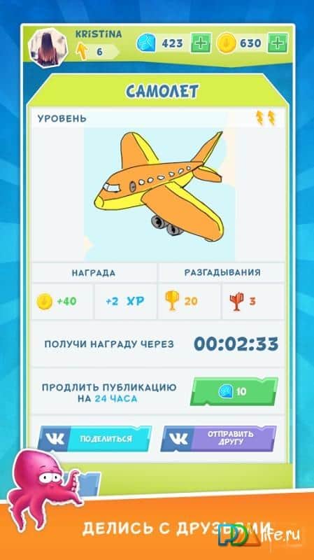 Рисовалка. Рисуй и угадывай – веселая игра на андроид, где вы будете отгадывать рисунки других людей. Если вы любите игру Крокодил то эта игра создана для вас. Правила в игре очень просты вам необходимо выбрать слово и с помощью разноцветной палитры и кистей нарисовать это слово. Другие игроки в течение 24, 48 и 72 часов должны угадать то слово чтобы нарисовали, если прозвучит правильный ответ то вы автоматически будете получать награды. Делитесь своими рисунками с друзьями и прилагайте всю свою фантазию, чтобы как можно точно нарисовать объект или предмет. В игре представлено более 1000 слов, 120 различных кистей, 80 палитр с красками и красивая анимация. Играйте в эту игру и добивайтесь отличных результатов.