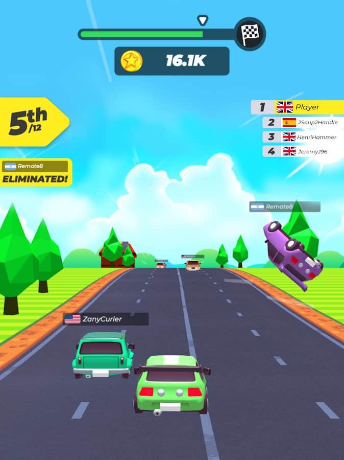 Тачки всмятку - гонка с элементами кликера на Android. В этой игре вам придется участвовать в гонках, в которых нужно крушить авто соперников, чтобы придти к финишу первым и заработать больше денег. На заработанные монеты вы можете улучшать свое авто в гараже и разблокировать более мощные модели. А вы сможете стать самым безбашенным водителем? Особенности: