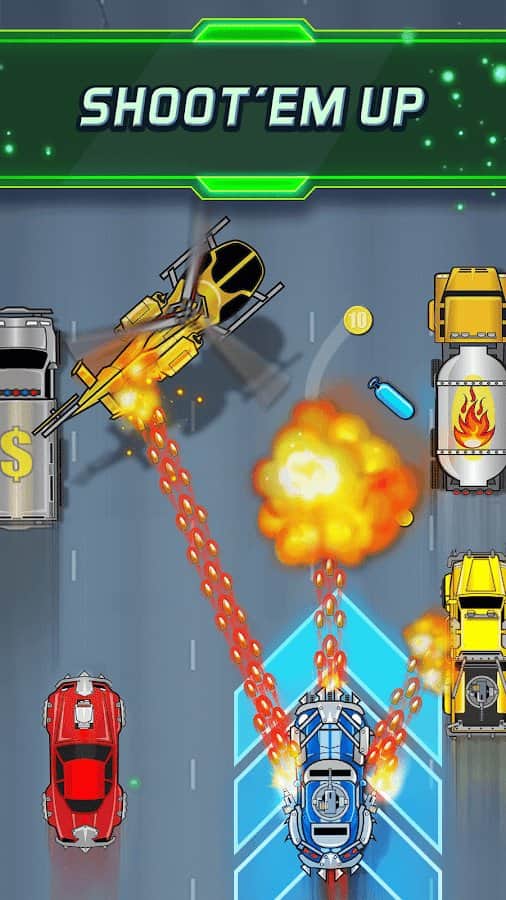 Road Riot – динамичные гонки на андроид, где вы будете управлять скоростным автомобилем и уничтожать противников. Примите свое участие в новой дорожной войне и состязайтесь в скорости со своими соперниками и стреляйте в них из всех орудий. Используйте в игре более 15 видов различного оружия такого как: боковое вооружение и огневые установки. Также в игре вы найдете пять типов машин, из них будут спортивные, магнитные, ракетные, лазерные и взрывные. Уклоняйтесь от ответного огня противника и по пути не забывайте собирать бонусы, ускорители и множители очков. Зарабатывайте деньги и открывайте для себя новое оружие и броню.