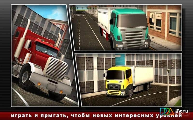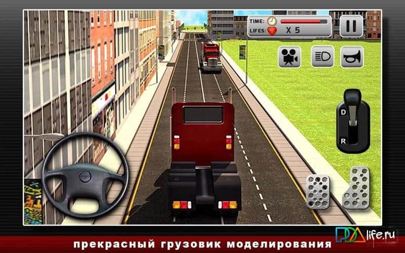 Road Truck Simulator - Неплохой симулятор езды на грузовиках на андроид. Вам предстоит кататься по городу и развозить груз, при этом не забывать заезжать на заправку. Управление в игре осуществляется при помощи ручки коробки передач, двух педалей, и руля. Также вы можете изменить вид: изнутри кабины водителя, или сзади грузовика. Игра больше подходит как тайм киллер, ведь огромных карт с долгими поездками в ней нет.