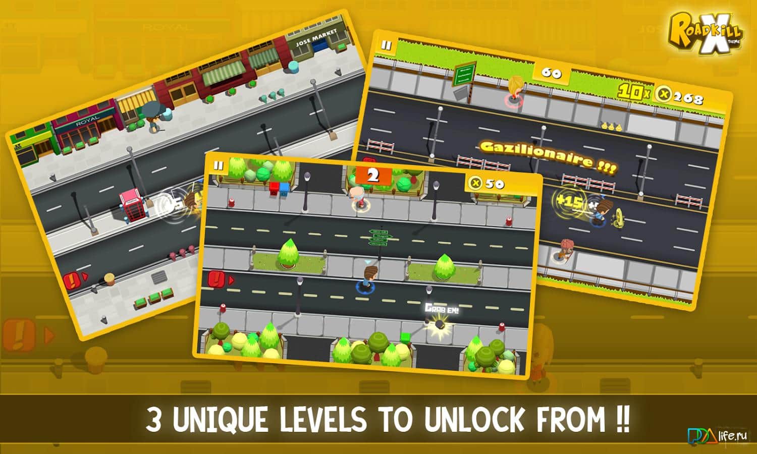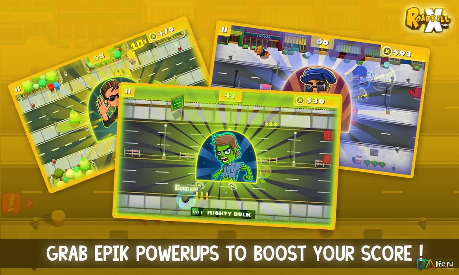 Roadkill Xtreme – отличная 3D аркада, в которой вам необходимо играть за молодого человека, которой бегает по улицам собирает монетки, избегает различные препятствия, в том числе и транспортные средства. От уровня к уровню в игре возрастает сложность, так что играть будет ещё интереснее. Также вас ждут различные бонусы, мини игры и многое другое.