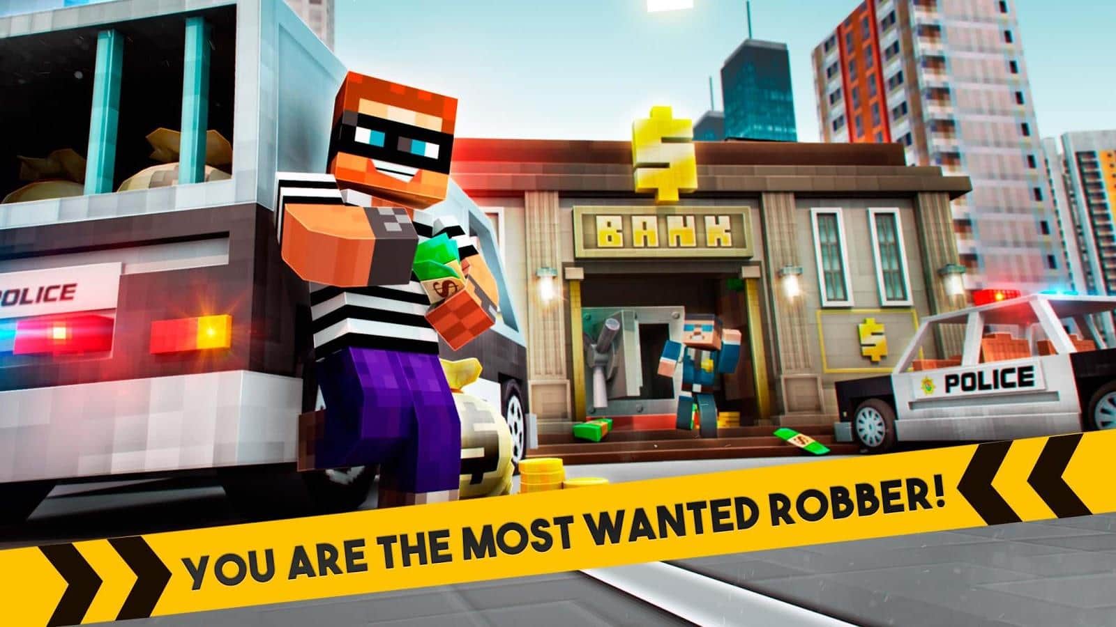 Robber Race Escape - Увлекательный раннер, про преступников. Вы только что ограбили банк, и что же делать теперь? Верно, бежать! А если быть более точным до ехать от копов, которые сели вас на хвост. Эта игра довольно хардкорный раннер, так как здесь происходят случайные события, к примеру машина полиции может внезапно врезаться во что-то, тем самым перекрыв вам дорогу, и если вы не успеете свернуть, проиграете. Так же по ходу всего уровня вам нужно собирать золотые монетки что бы улучшить различные усилители, такие как ускорение, магнит для монет или же щит, который защитит вас от любого столкновения. Все эти бонусы разбросаны по уровню, и вы всегда сможете их подобрать.