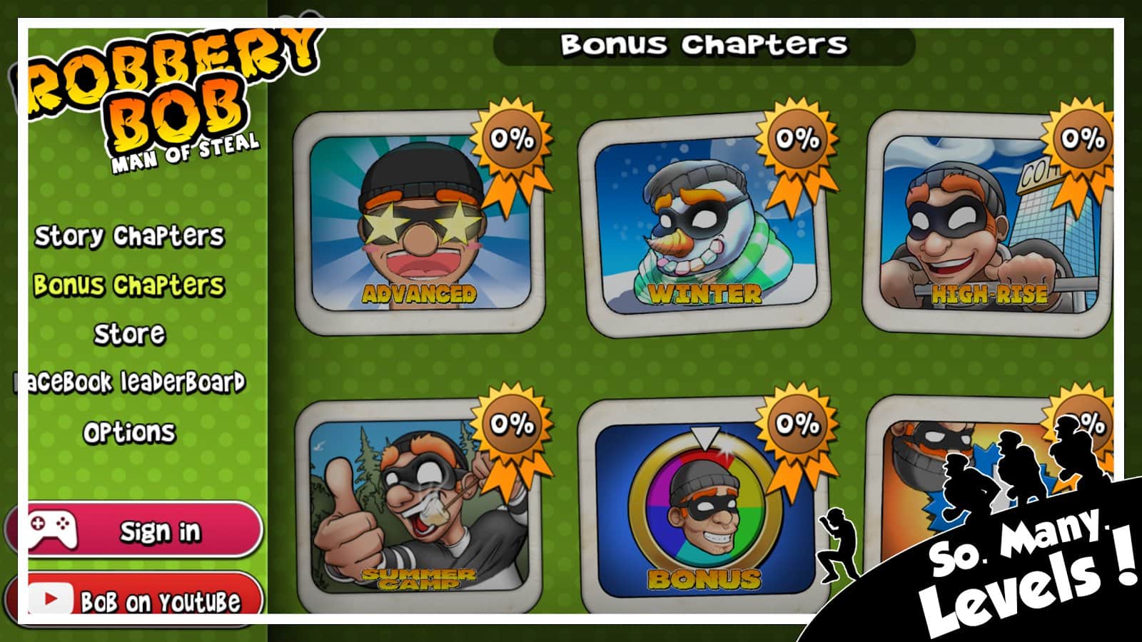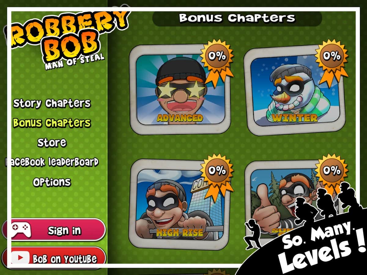 Robbery Bob - воришка - домушник, не очень везучий, медленно, но верно делает свое черное дело, а именно - обворовывает дома, квартиры и офисы. Берет все, что попадется под руку - деньги, золото, украшения, сувениры, технику и даже пульт от телевизора! И смелости ему не отнимать - ведь ворует он даже днем. Единственная проблема - не быть пойманным ни хозяевами, ни охраной, ни собаками! А для этого надо постараться - где-то подождать, где-то спрятаться, а где-то уносить ноги, что есть мочи - благо игра предусматривает и такой вариант развития событий!