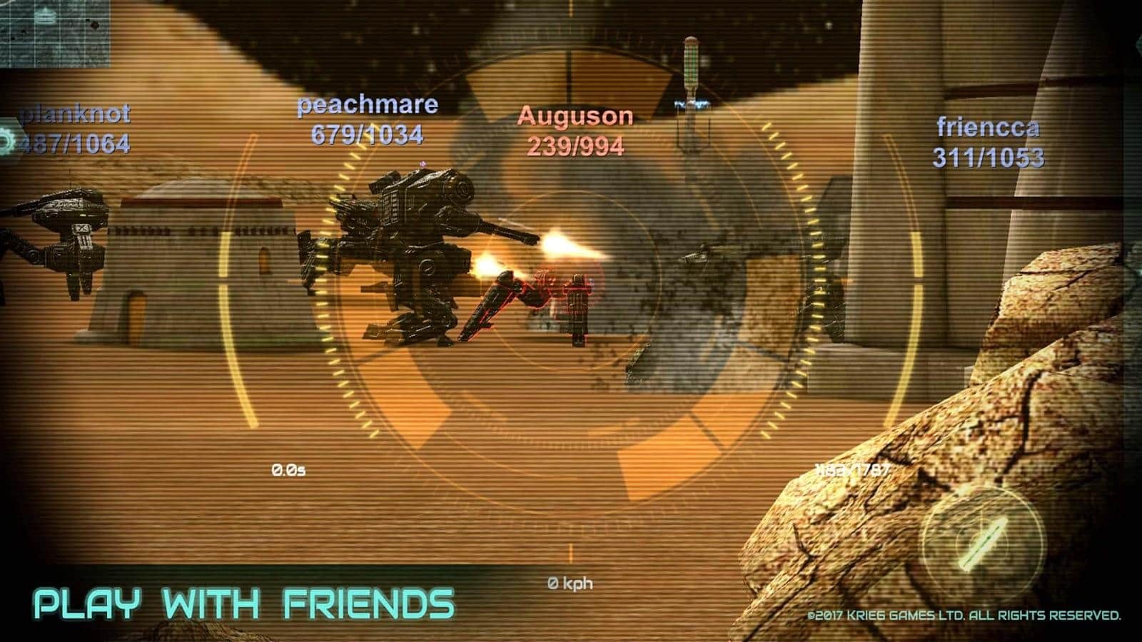 Robokrieg - Robot War Online – экшен на андроид, где вы примите свое участие в сражениях роботов. В этой игре вы окажитесь на далеких планетах, где вашей задачей будет уничтожать роботов противника. Вступайте в смертельные битвы и побеждайте опытных соперников. Присоединяйтесь к армии роботов, которая состоит и тысячи реальных игроков со всего мира. В игре вы сможете самостоятельно выбрать себе робота из представленных в игре, а также усовершенствовать его с помощью многочисленных обновлений. Путешествуйте по различным планетам, начиная с Марса и заканчивая Сатурном и откройте для себя целую вселенную. Прибегайте к помощи друзей и создавайте с ними целые батальоны роботов, не давая врагам шансов на победу.