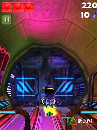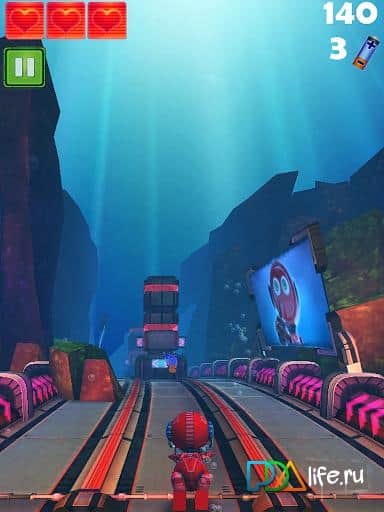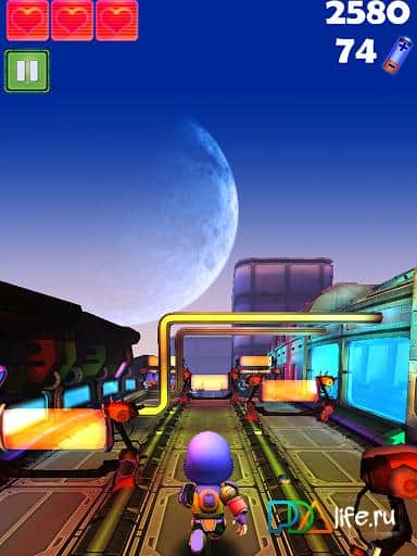Robopop Trek - отличный раннер для андроид, который уже с первого взгляда "берет" своей графикой! Тут же стоит сказать о локациях - 3 вида - суша, под водой и в космосе! Бегите и собирайте батарейки по пути, а также открывайте новые возможности - локации, новых героев и пр. Кстати, о локациях, чтобы пройти локацию "под водой" надо обзавестись аквалангом, а чтобы побегать в космосе - не помешает реактивный ранец! Есть еще и бонусы, например, перчатки, которые дают неуязвимость!