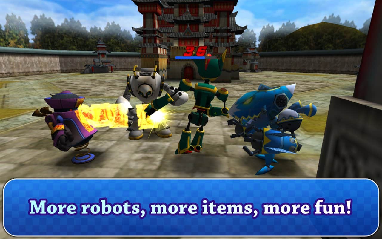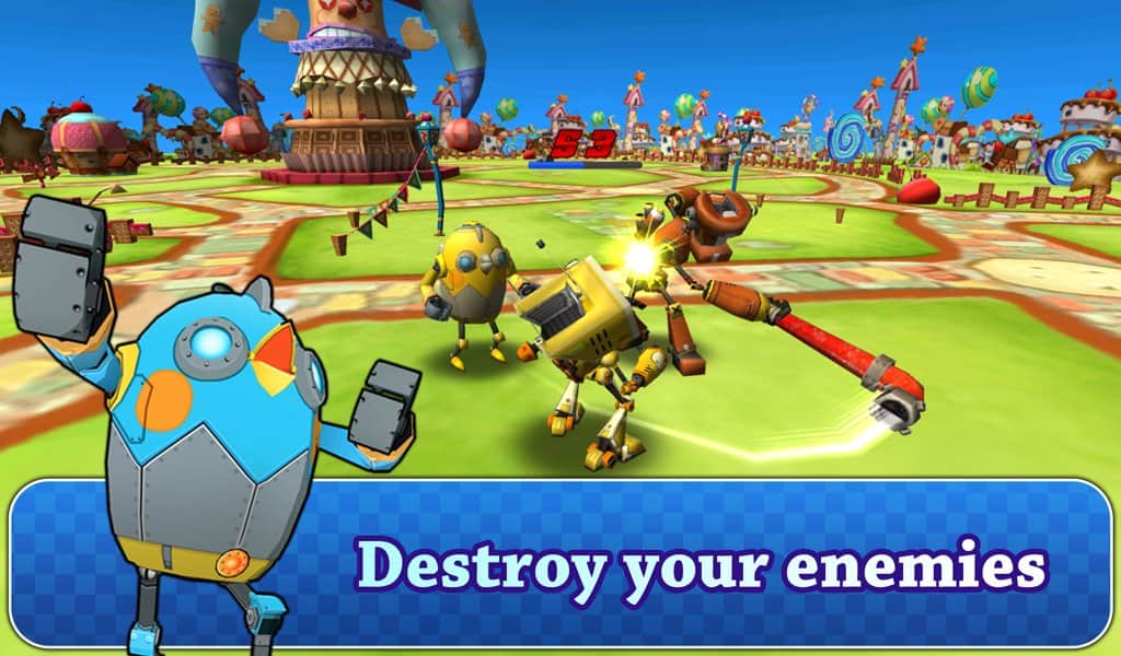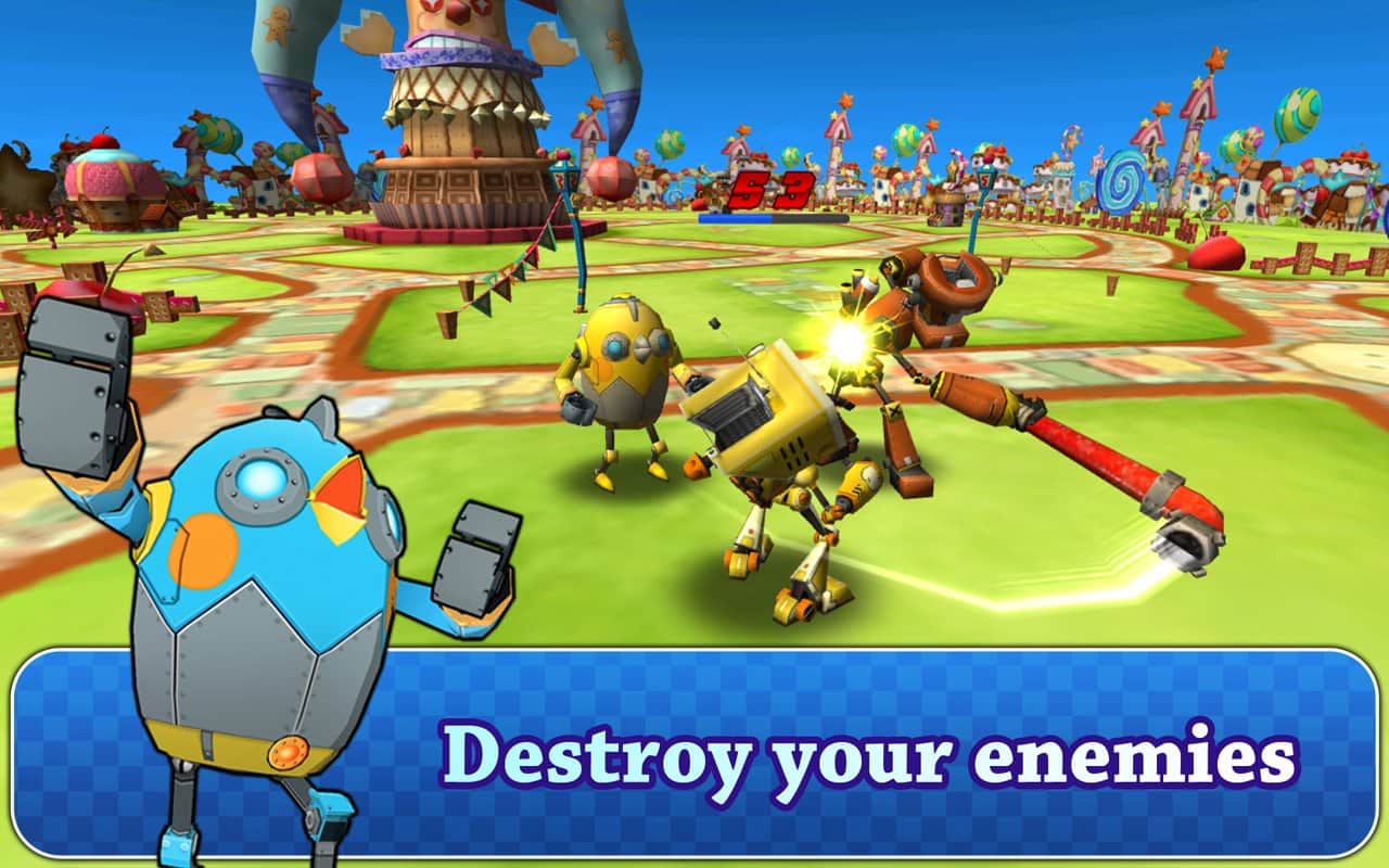 Robot Battle 2 - Отличная аркадная андроид игра, где вы погрузитесь в мир роботов. Вы примите участие в боях этих железных монстров. Среди этих роботов вам встретятся самые разнообразные, и даже забавные. При этом каждый робот настраивается по вашему усмотрению. В игре семь различных карт для проведения боев, где вы можете поиграть с друзьями в режиме онлайн. На одной карте могут расположится до шести игроков.