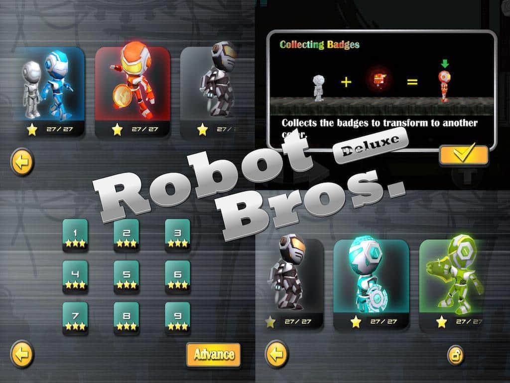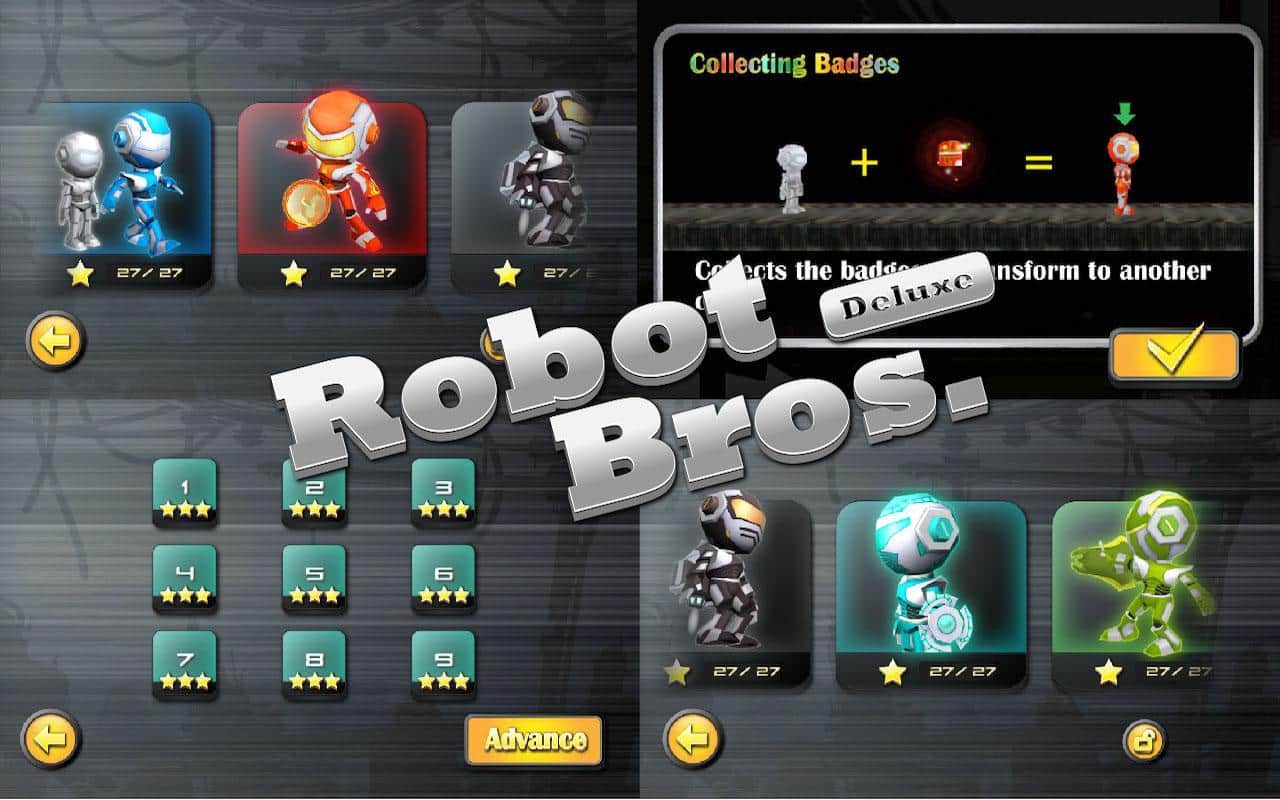 Robot Bros Deluxe - расширенная и полностью улучшенная версия игры Robot Bros на андроид. Игра включает в себя 75 новых уровней разделенных на пять больших группы. Выберите себе робота из большого разнообразия внешних видов и способностей и отправляйте его в путь. Исследуйте запутанный лабиринт и по пути решайте различные сложные головоломки.