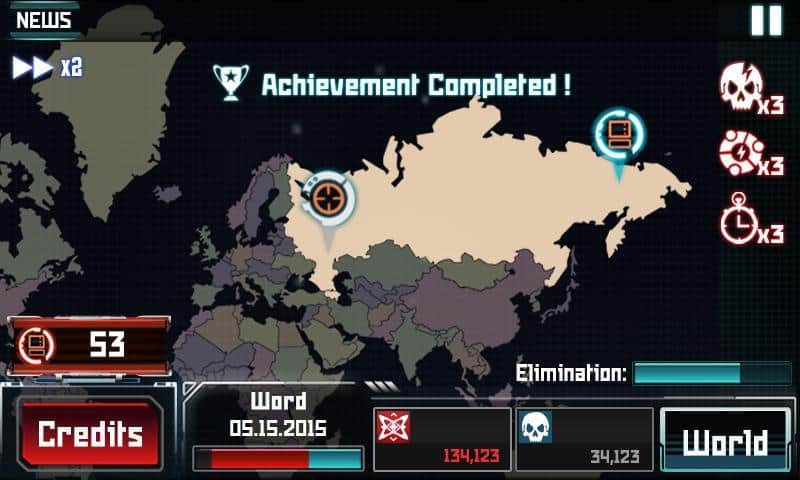 Robot Invasion – игра на андроид, где вы примите свое участие в войне роботов и людей. В этой игре вы будете выступать на стороне роботов и пытаться уничтожить все человечество не оставляя им не единого шанса на спасение. Управляйте армией боевых роботов и выбирайте себе страну для захвата и уничтожения. Захватывайте различные страны и государства, доказывая свое превосходство над людьми. Добывайте ценные ресурсы нужные вам для улучшения ваших роботов и выполняйте все поставленные миссии. Старайтесь уничтожать цели за минимальный промежуток времени и установите свой рекорд в этой игре. Игра порадует вас интересным сюжетом, 60 странами для захвата и 30 уровнями.
