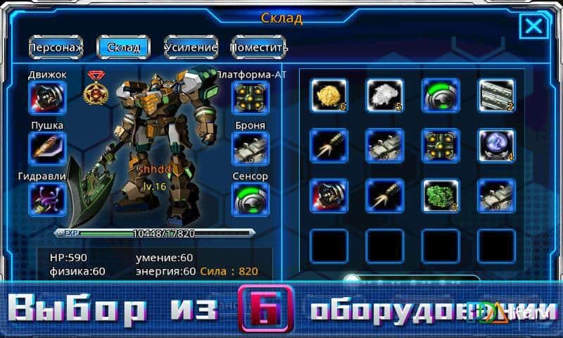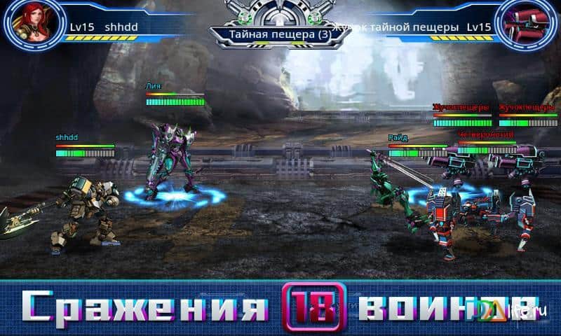 Robot Wars - отличная MMORPG на андроид, рассказывающая историю далёкого будущего, где происходят сражения больших роботов. Огромные роботы, увешенные передовым вооружением готовы вступить в бой с неприятелем. Игра отлично визуализирована, качественно выполнена прорисовка роботов и всех уровней в целом. В игре присутствует режим обучения, так что вы с лёгкостью сможете разобраться в управлении и хитростях игры, а разнообразное оборудование и мощное оружие сделают игру ещё более привлекательной для геймера. Докажите всем что вы лучший.