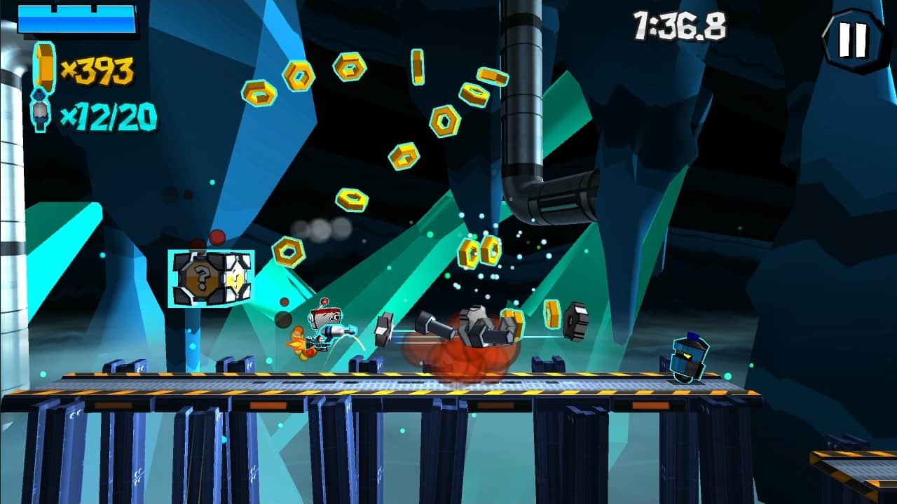 Roboto - изумительная и приятная игра на Андроид с хорошей графикой и эффектами. Вы - маленький робот Робото, который буквально недавно научился кататься на своём классном ракетборде. Но вот огорчение - ваша любимая робото-девушка улетела на другую планету. Значит теперь вы должны добраться до космического корабля, на котором полетите за ней в соседнюю галактику. И путь ваш будет не легким, помехой станут другие роботы, и большие и маленькие. Надейтесь на везение и вы найдете какой-нибудь бонус в виде монет или апгрейда.